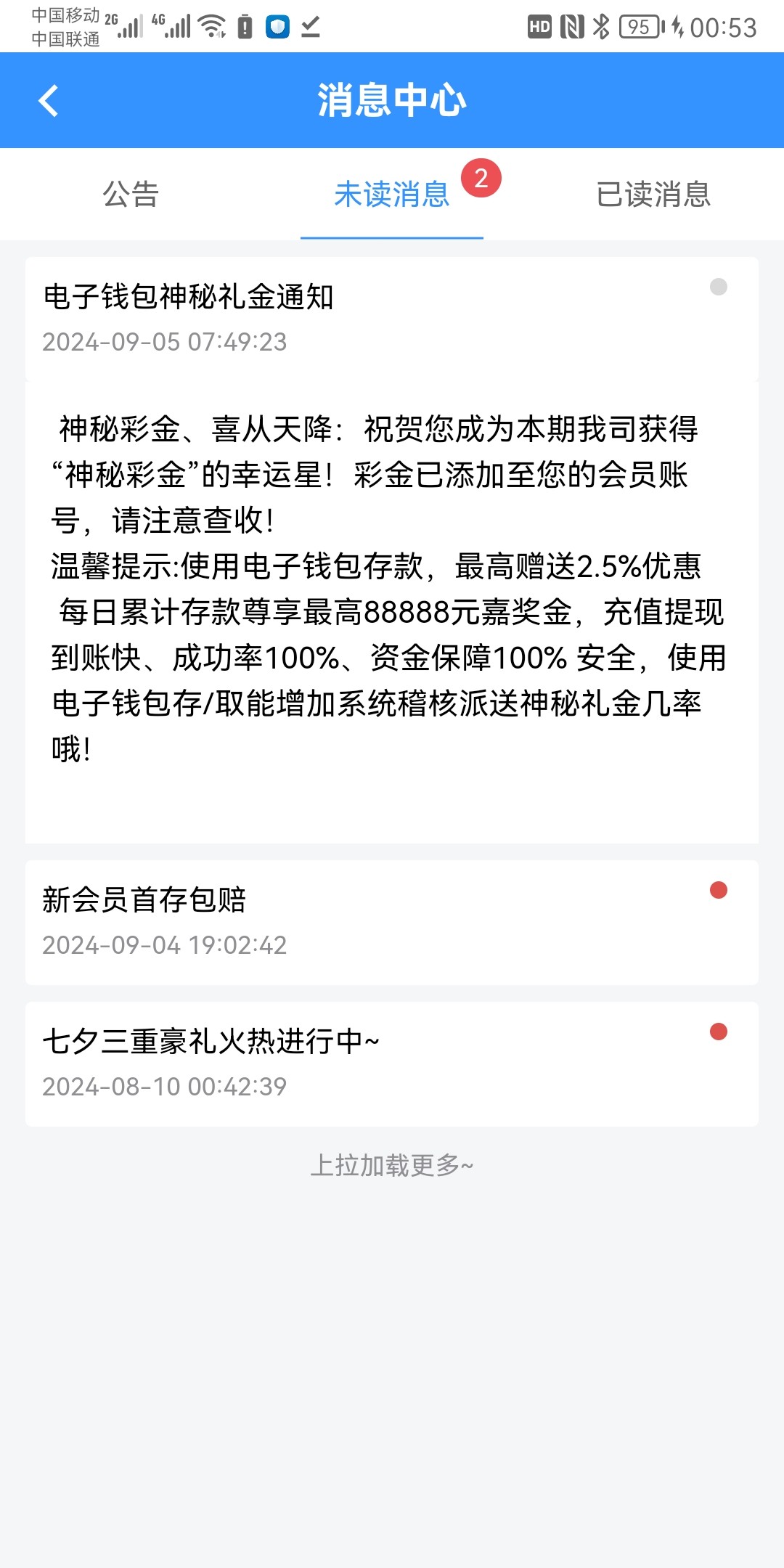 没看到神秘彩金。以前有号,前几天打电话又特邀我另一个手机号。新注册的一直签到没打出来,刚才充了100提了250秒到。