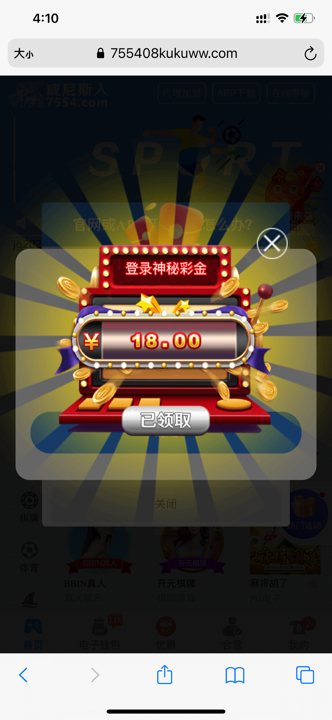 登陆自动跳出来的,神秘彩金领了18 地址 7554.com