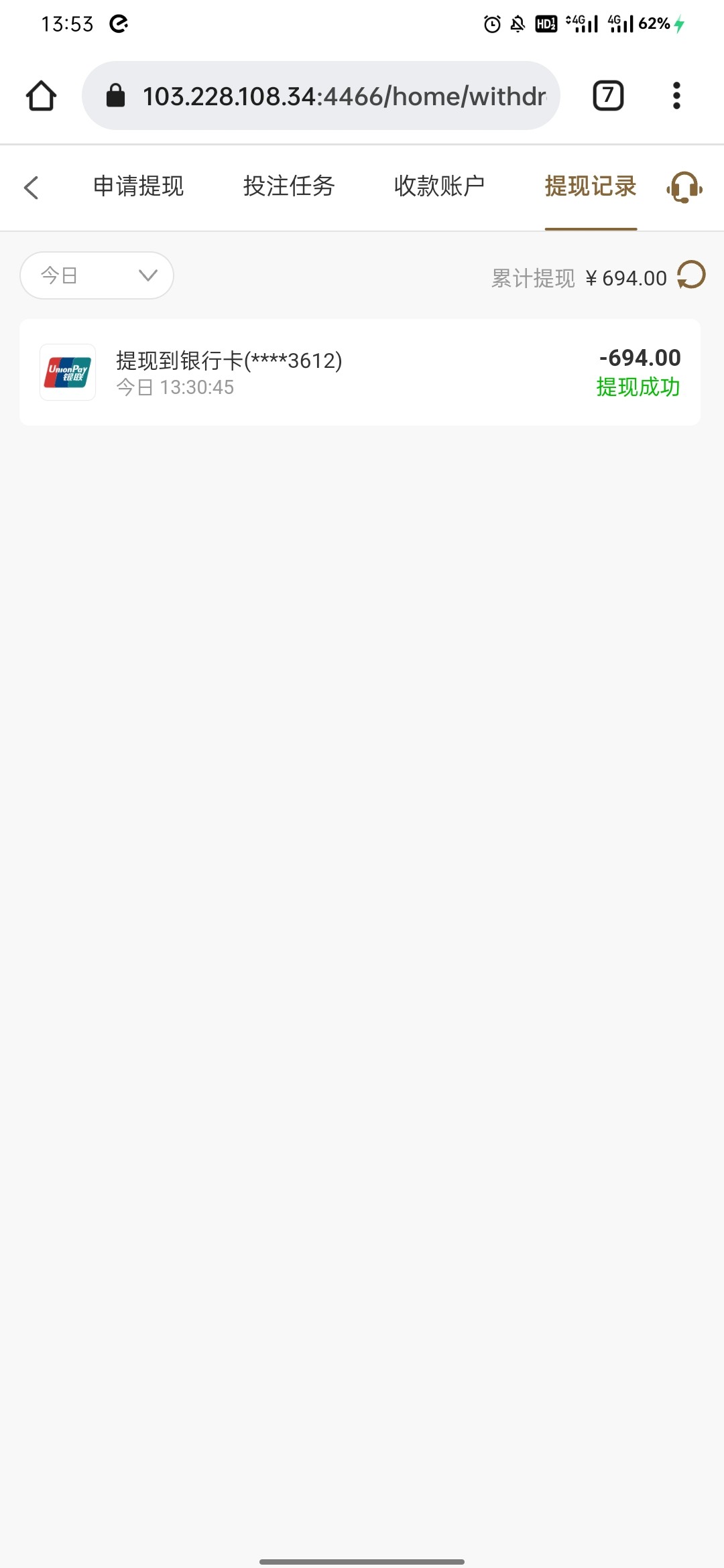 侥幸打出来了,麻1,免中免,直接给到380。提了银行卡,秒到