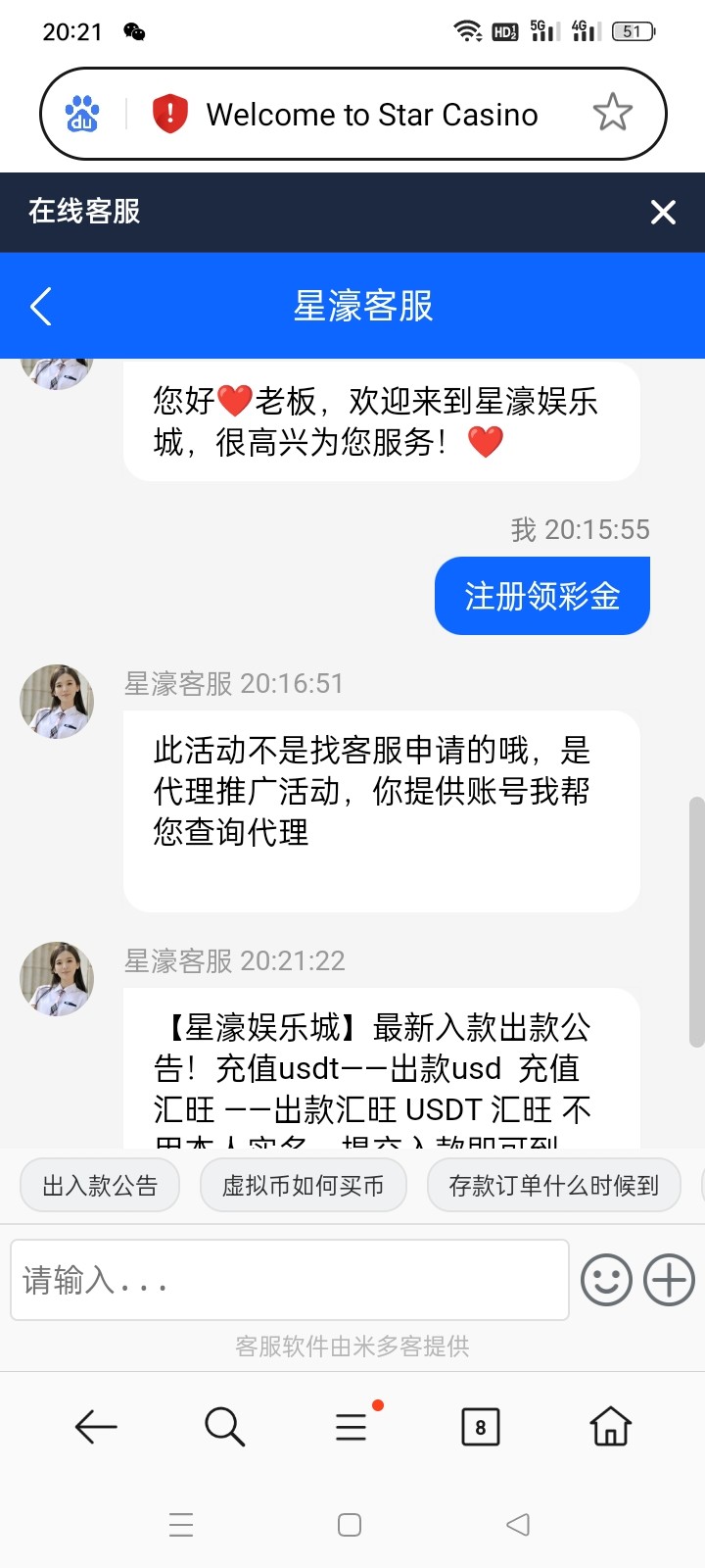 又是一个骗资料的傻逼台。机器人回复除了1就是添加银行卡 用户名。