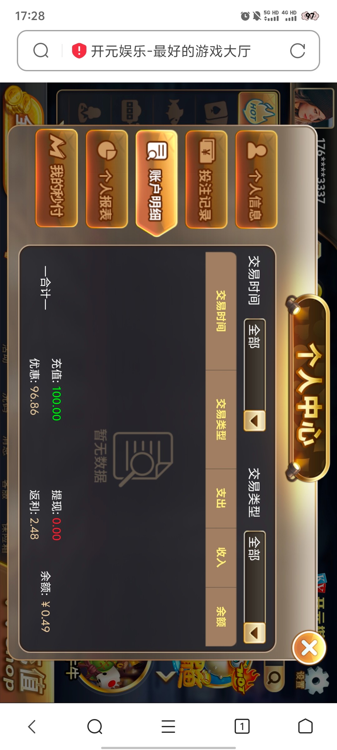 送了 打不出来 之前充值100提了两千多