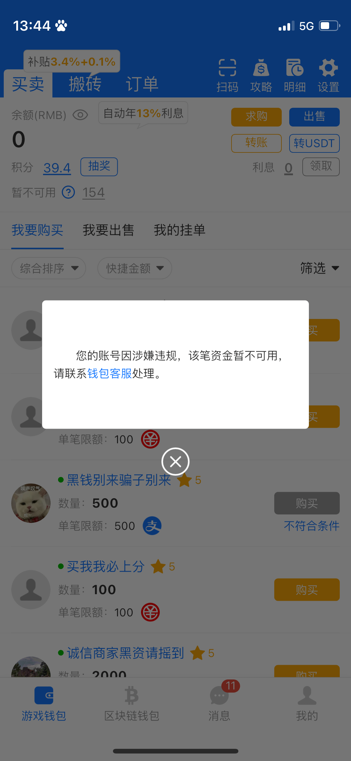 白嫖大王666 ▶ aa513427 为啥我就提了一百五钱包就被封了,难道是狗庄让他封的? 2024-9-12