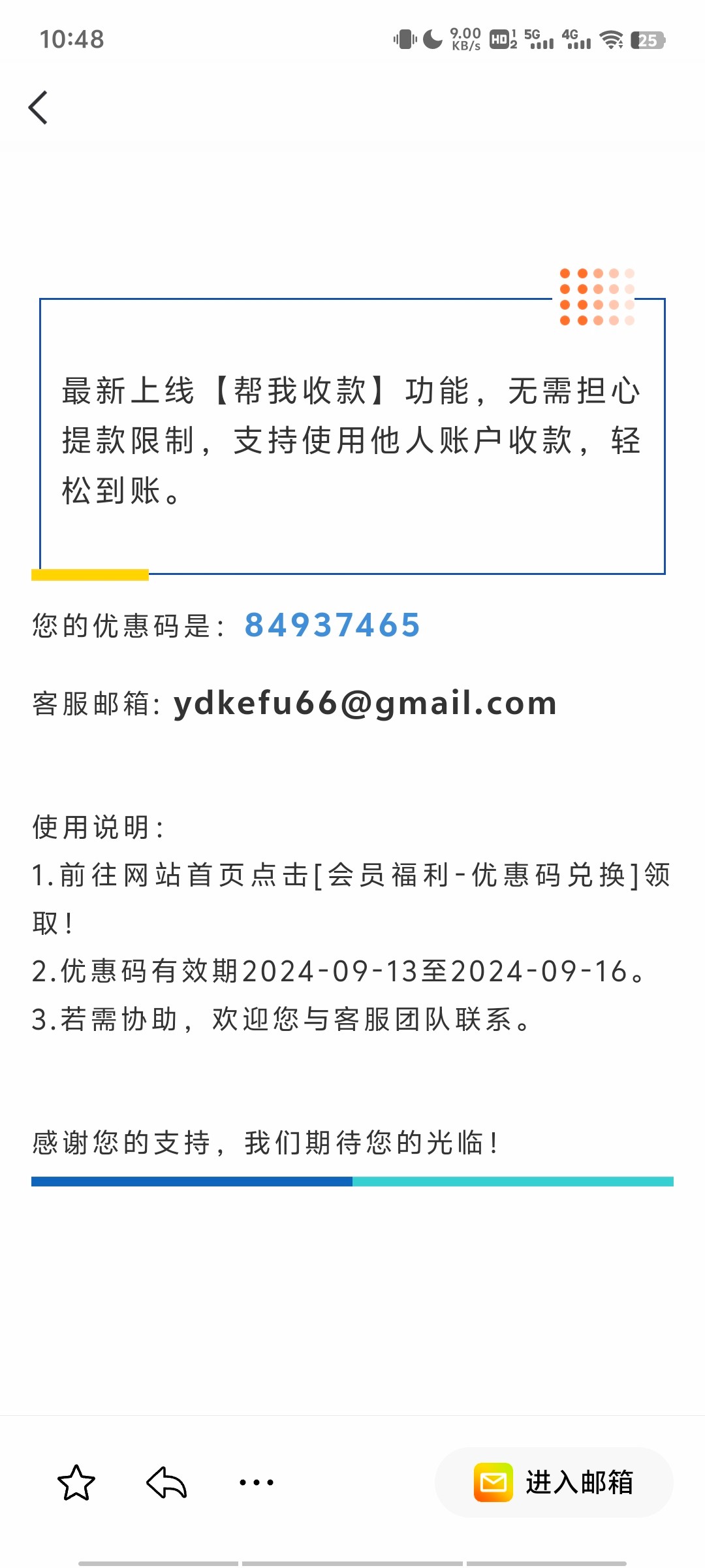 没事翻翻邮箱有收到优惠码可以去兑换 604416.co