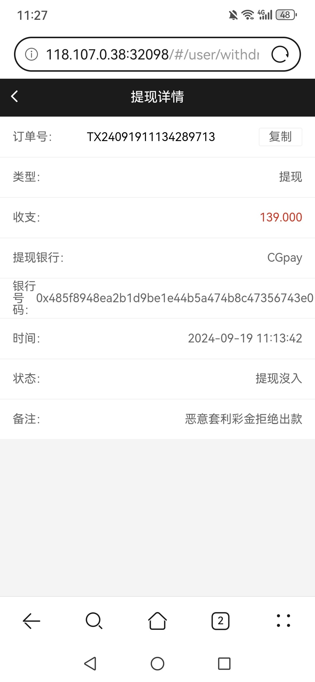 黑狗平台。冲过一万八。一次没体现过。这次回馈88。我提500给我没收了 666