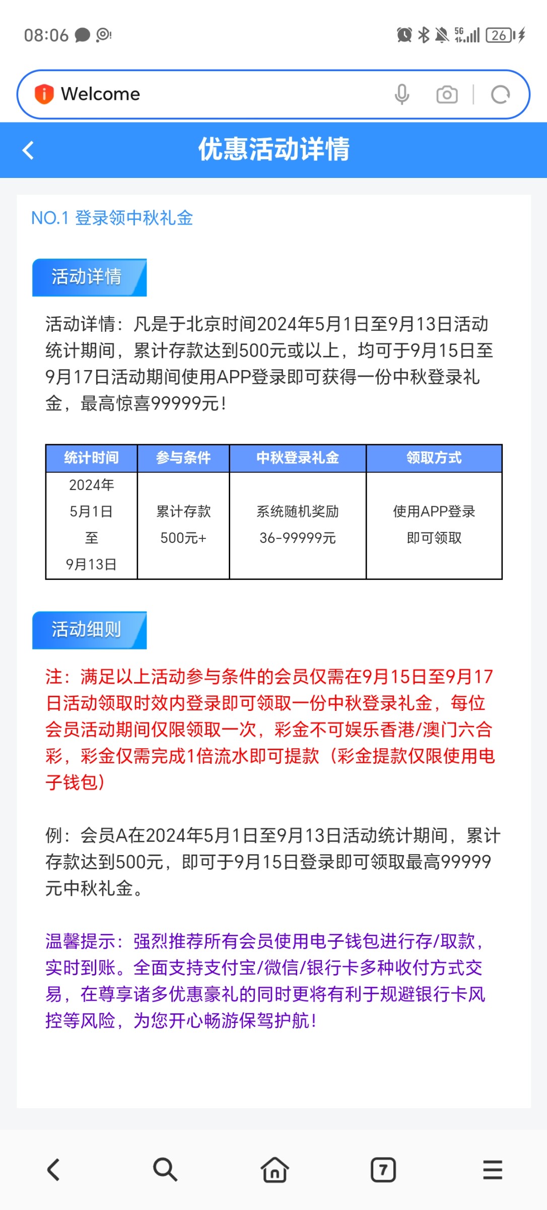 5.1-9.13充值500+登录自动弹出,最低36彩金
