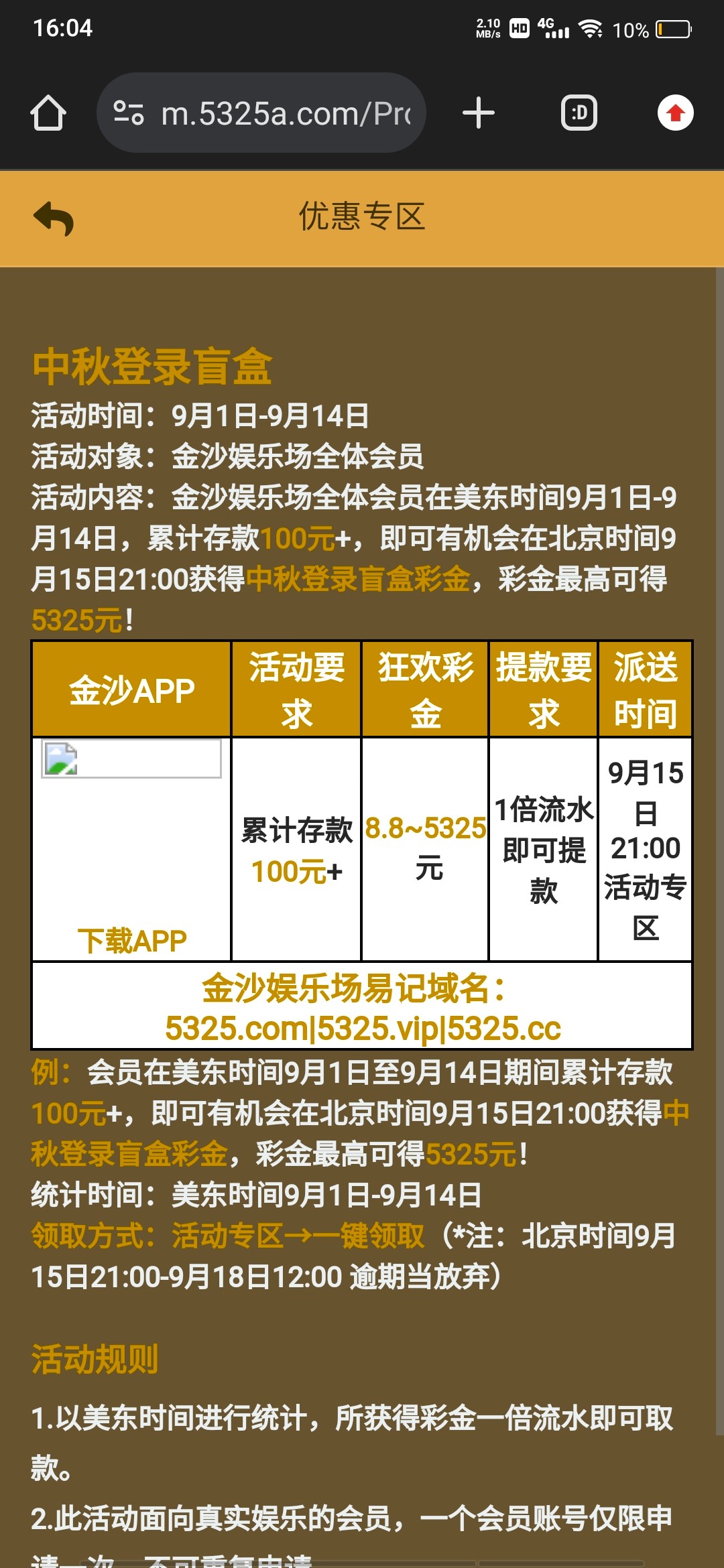 5325金沙的中秋回馈,有过充值的或者有号的都可以上去看一下,保低8.8