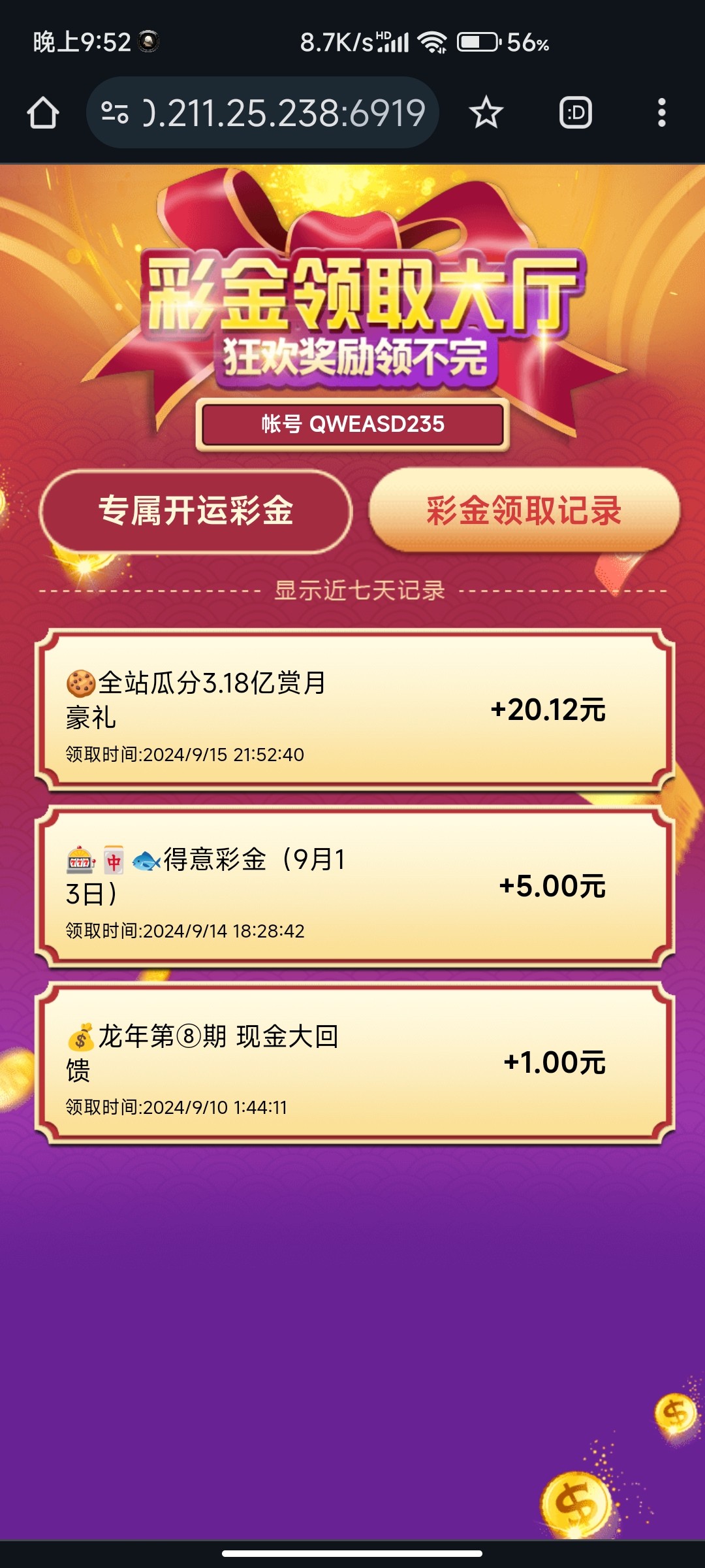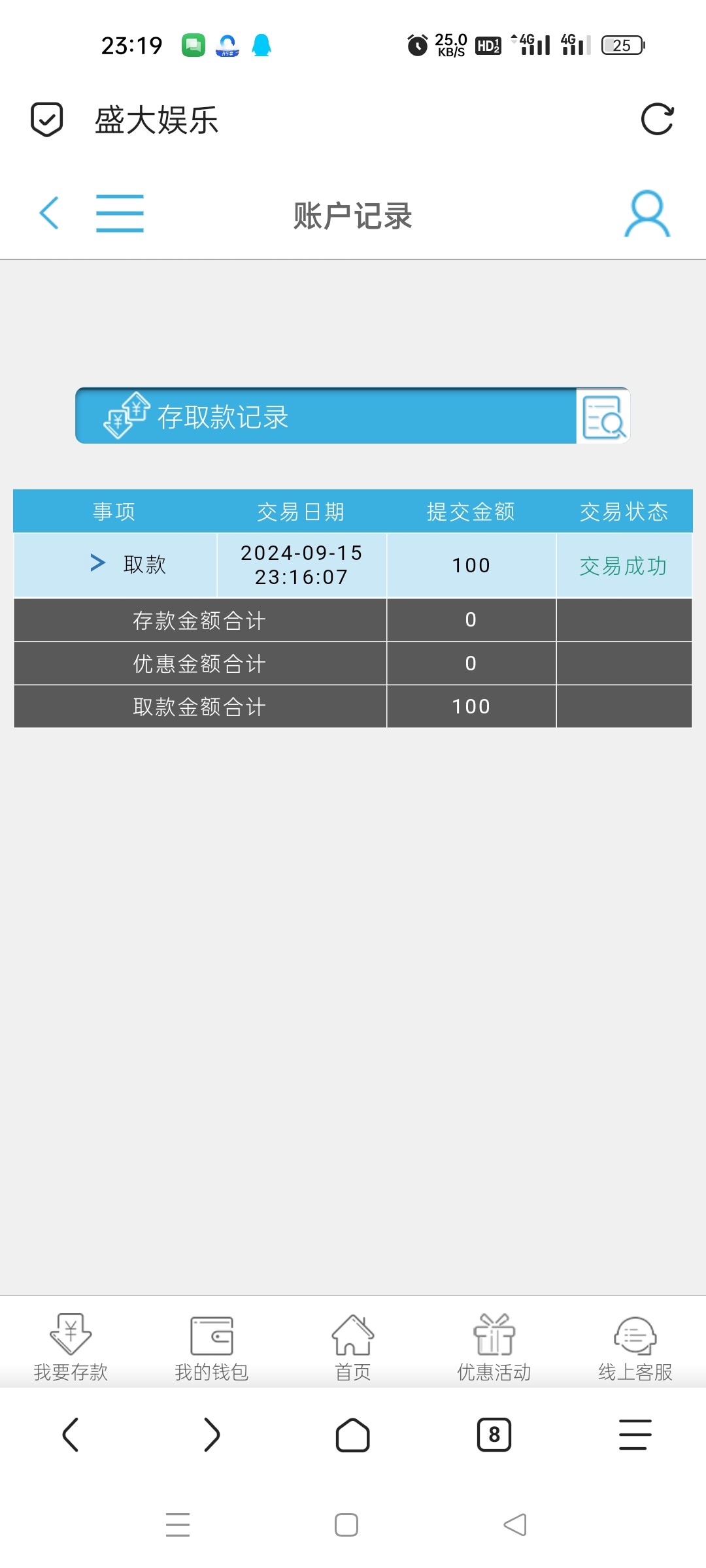 没报名领了一个红包9块下了100