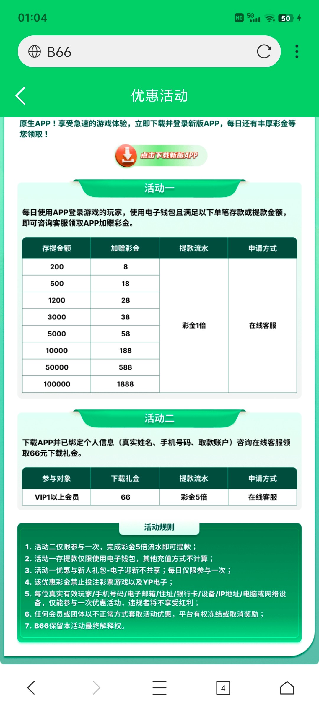 vip1及以上送66,有达到要求的兄弟可以申请一下,连100流水都没打上,擦
