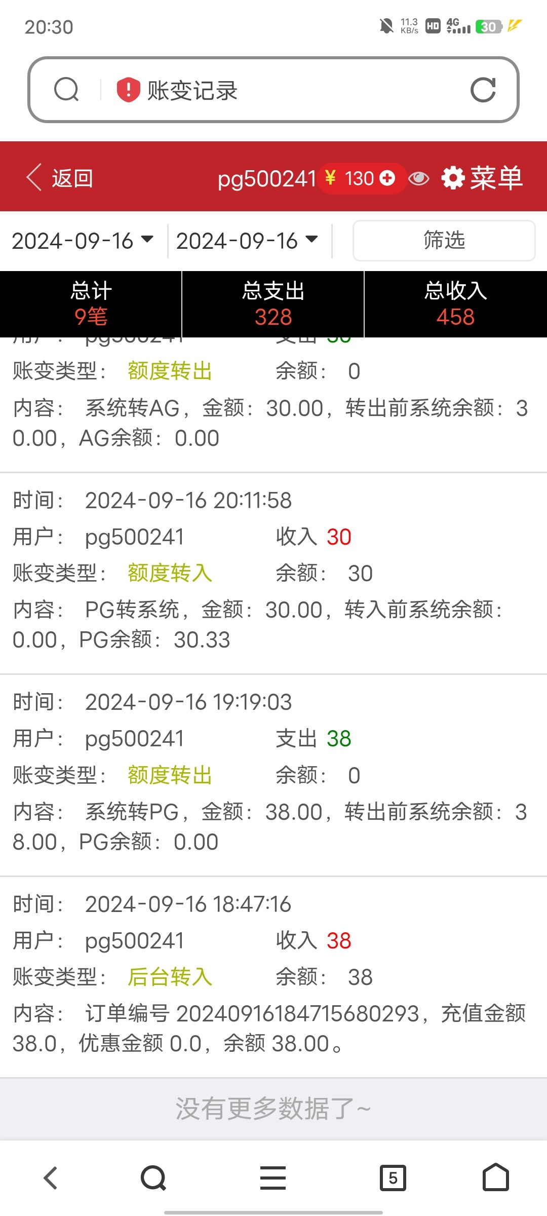 出款情况:自测(