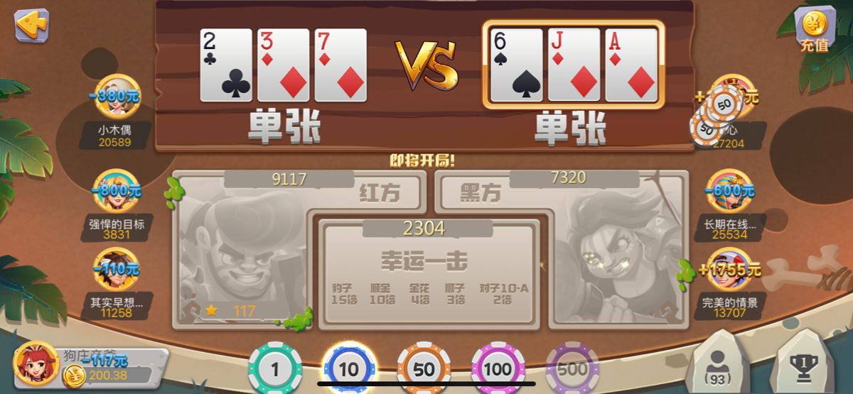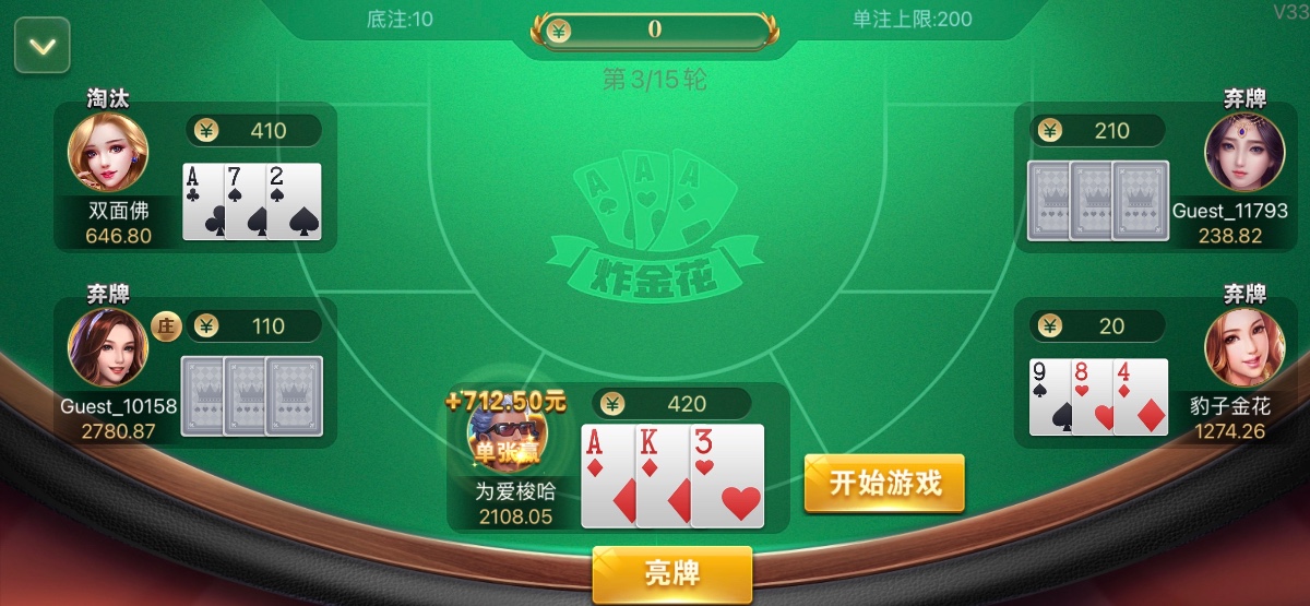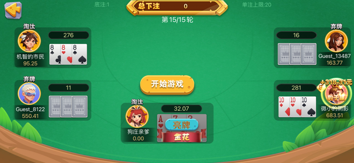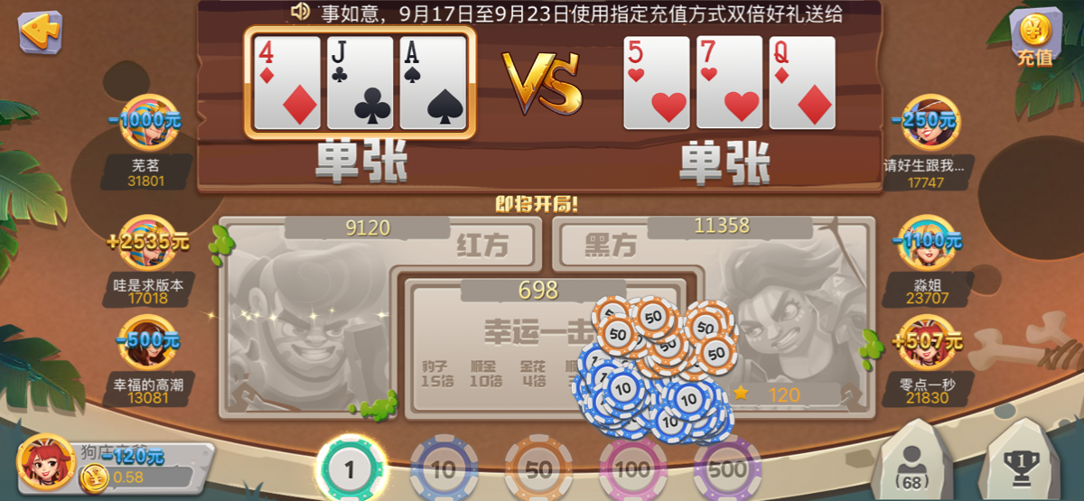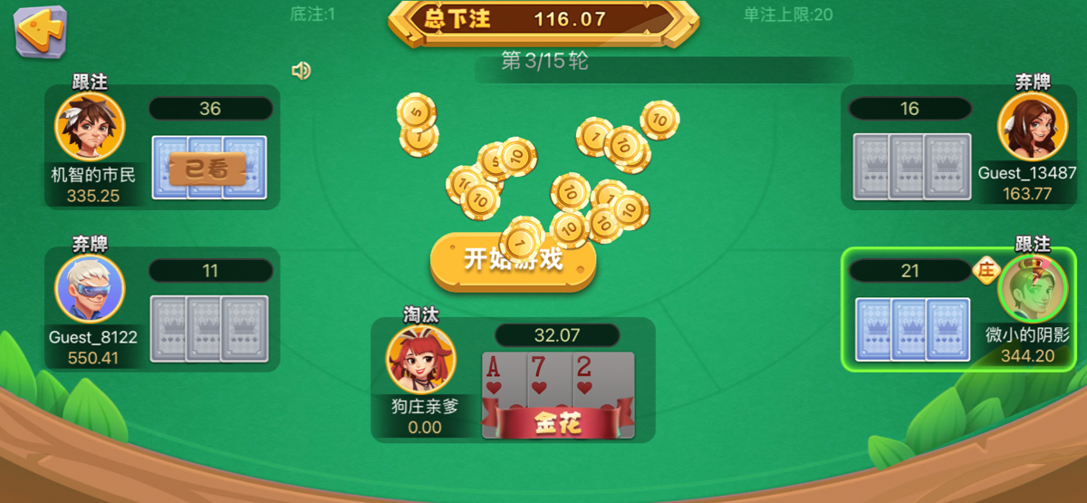 我18年玩的时候就知道了这玩意全是人机!我那次也是K金对方三家一个A金一个顺金一个豹子