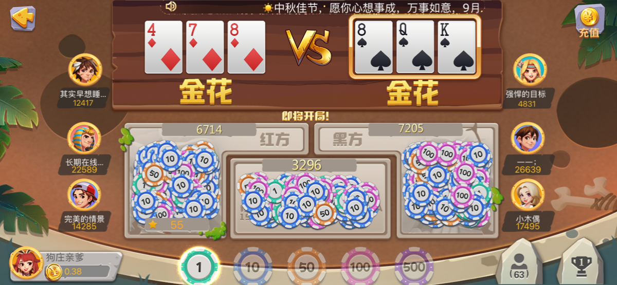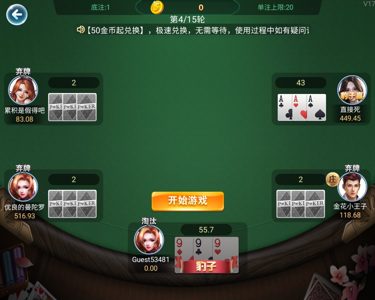 改名中奖哥 ▶ 喜欢你甜蜜蜜 玩这个不要怕没牌就跑,有个金花肯定要压上去啊输了就是输了钱多也是一个道理最后也是要压没的 2024-9-17