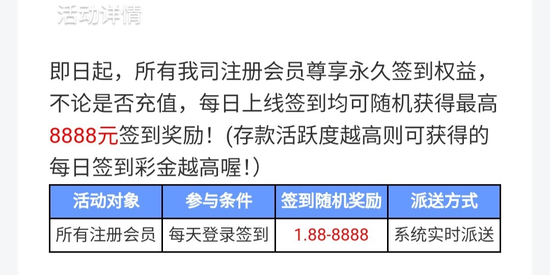和以往的签到彩金一样,注册绑卡,每天签到一次领彩金打满100提款,现在春节每个钟都有一次抢红包免费的就一两块钱打100也有概率,总之稳稳白嫖拒绝充值