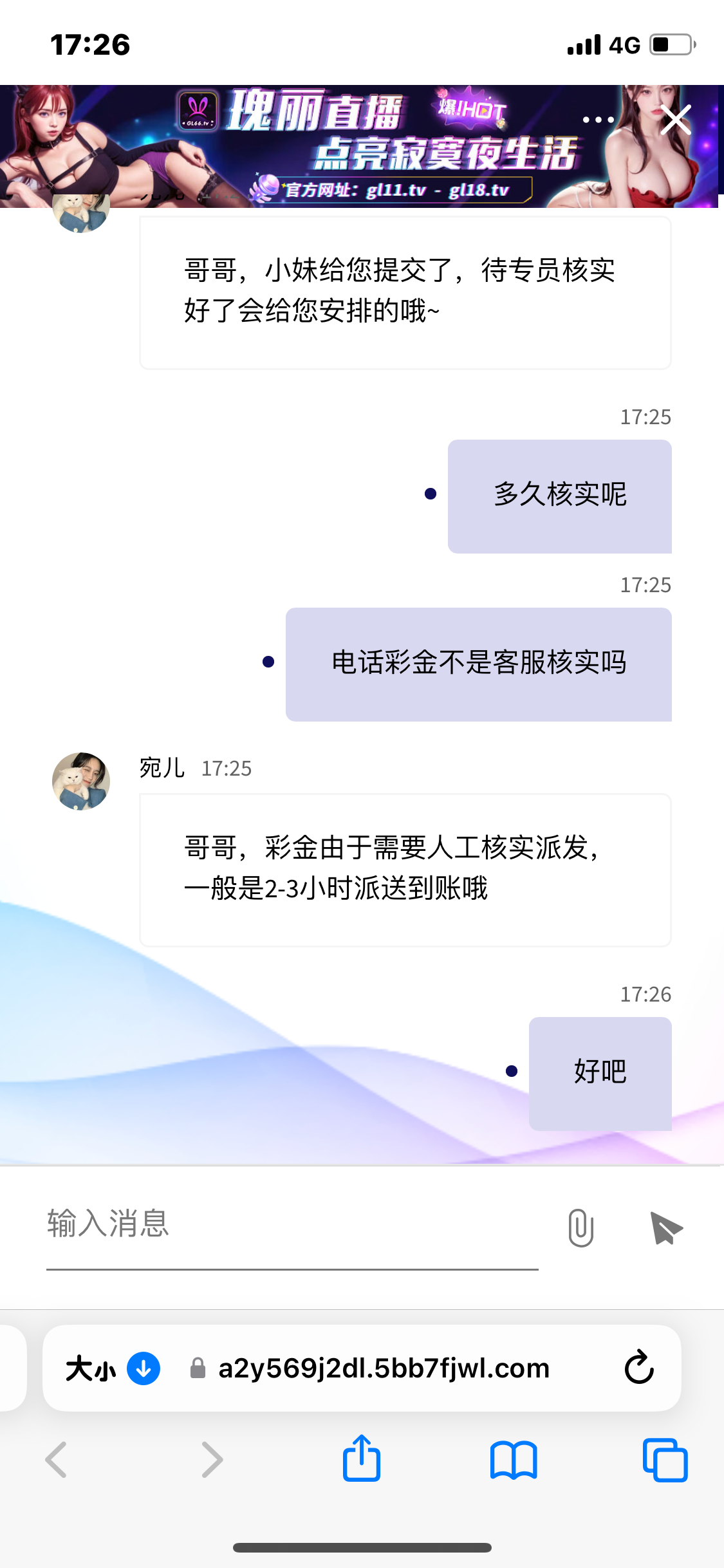 打电话来的,还要送7天128,网址说的是600600.tv,但是我是用的 gl88.tv