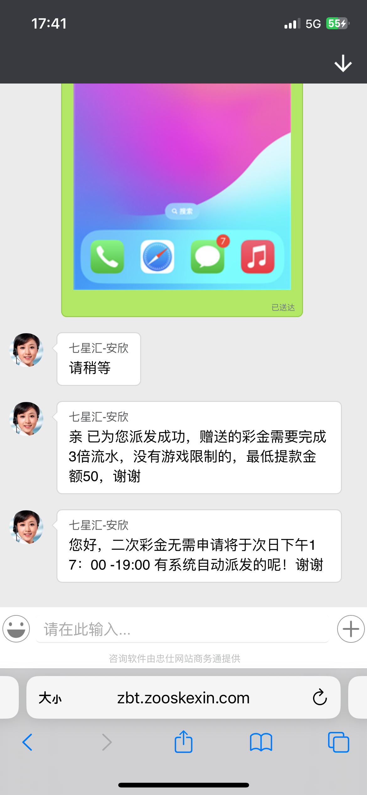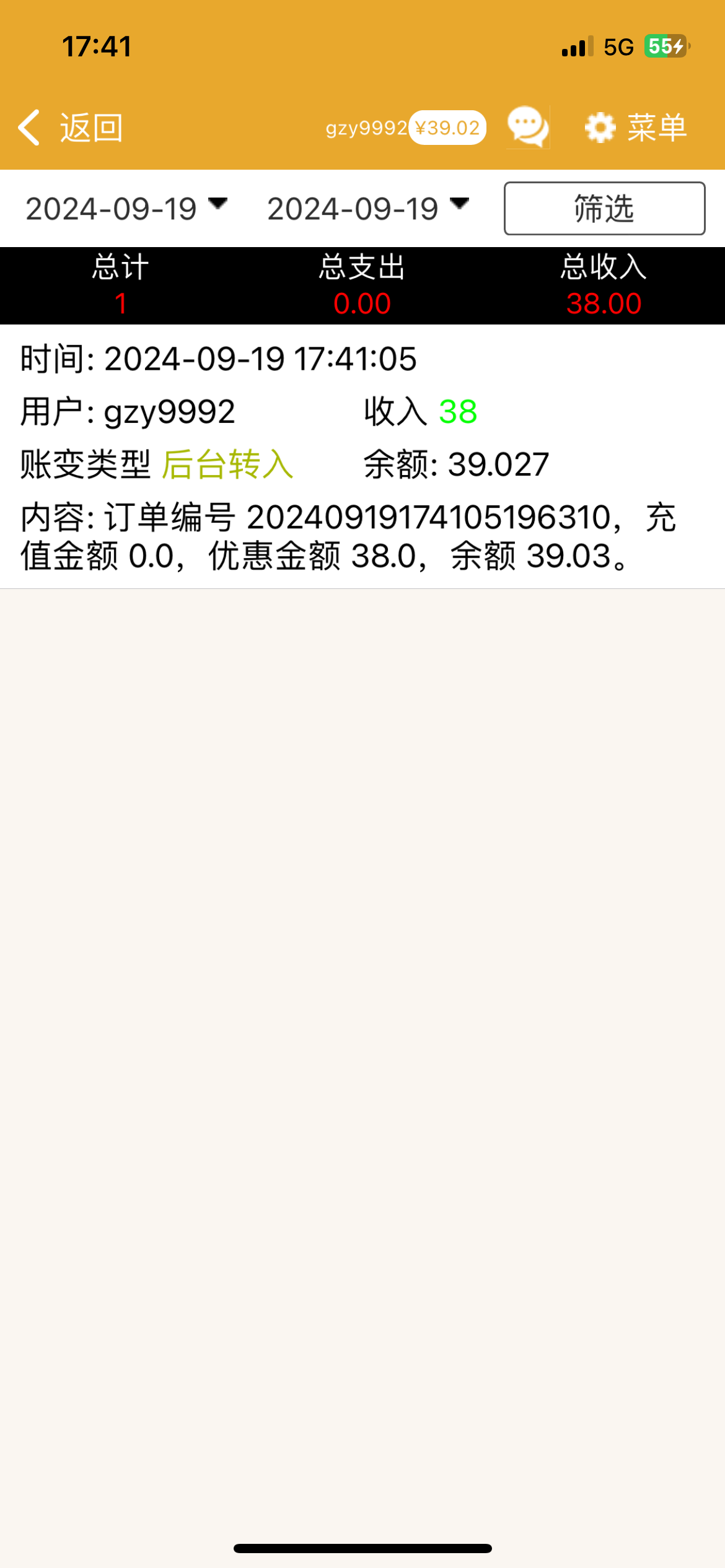 收到短信了,送了38
