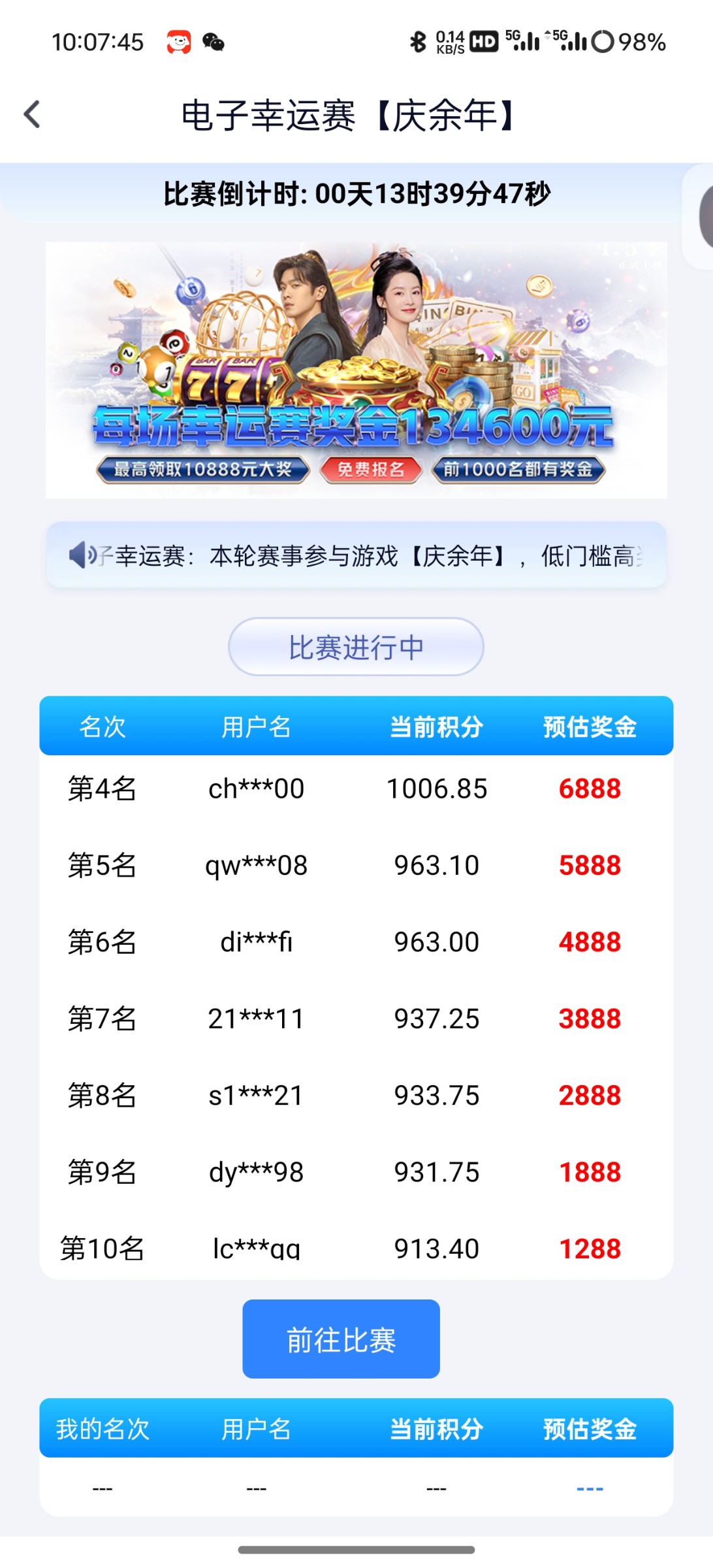 可以查排名了 去看看你们有没有上排名 上了排名的 等晚上凌晨12点 就有彩金 反正我是不知道我有没有上 我的积分就381