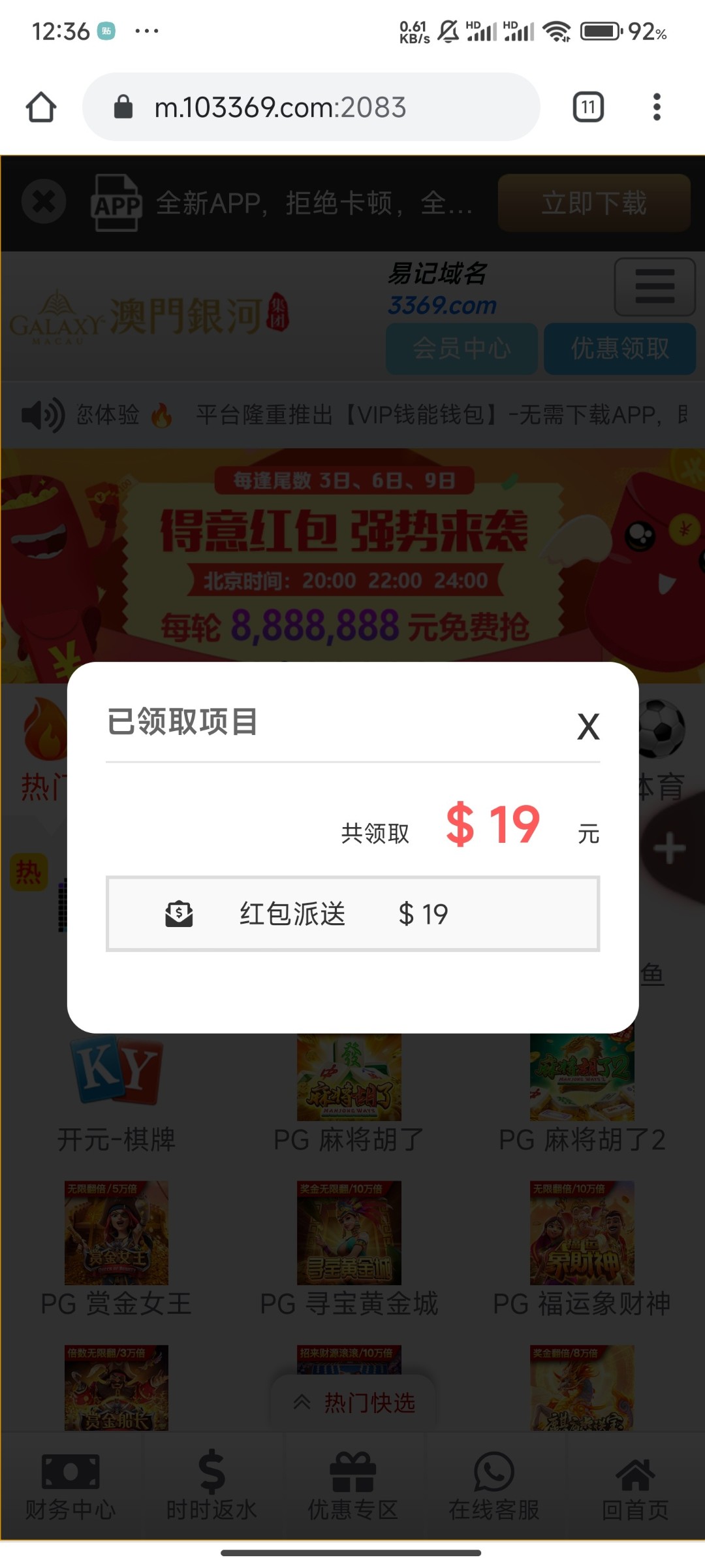 注册过,自行登录会有弹窗有就有,没有就没有啊,回馈白嫖即可