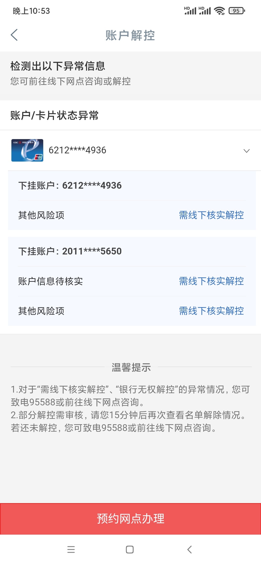 你这种就是反诈冻的,到银行以后会叫你去反诈开证明才能解。