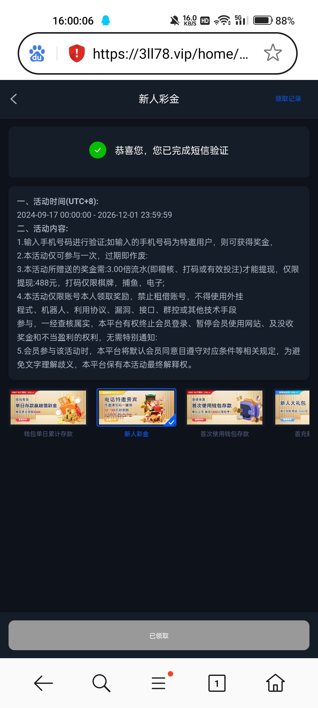 发了短信,然后注册也没看见有这个活动页面