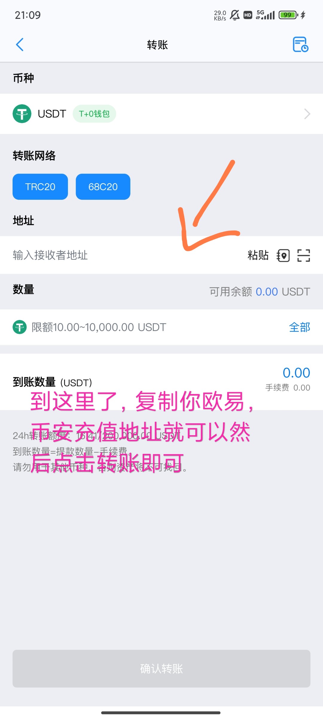 故友 ▶ 手法哥 打开欧易,点击充币,就能看到trc 了 2024-9-21
