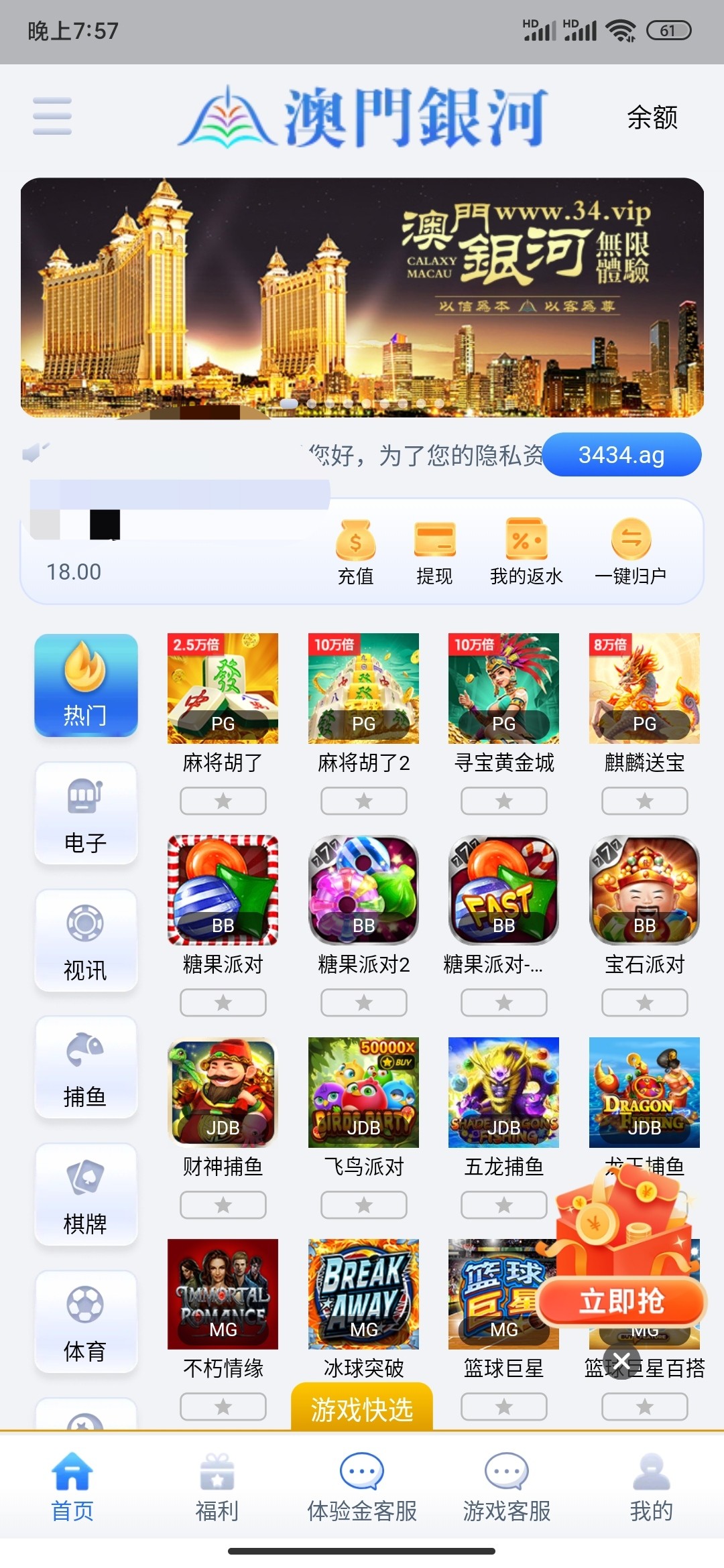 注册下周澳门银行APP,联系体验金客服领取18体验金,需要下载实名No钱包(需要人脸),并绑定No钱包地址联系体验金客服领取