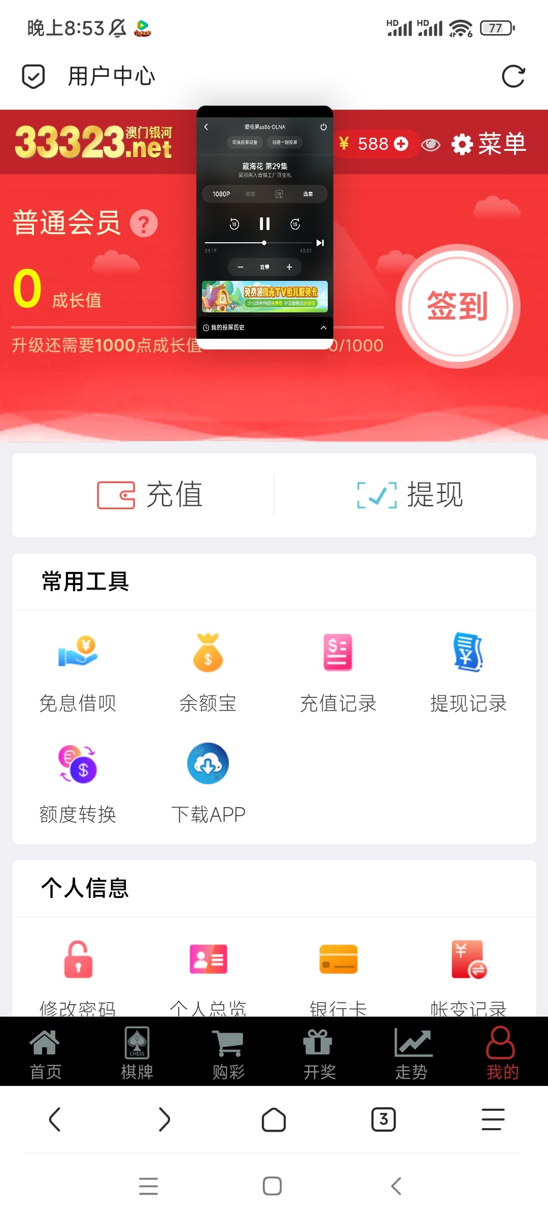 这个台子格局特别大 我之前玩的是100送58 打到六千多提现都秒给