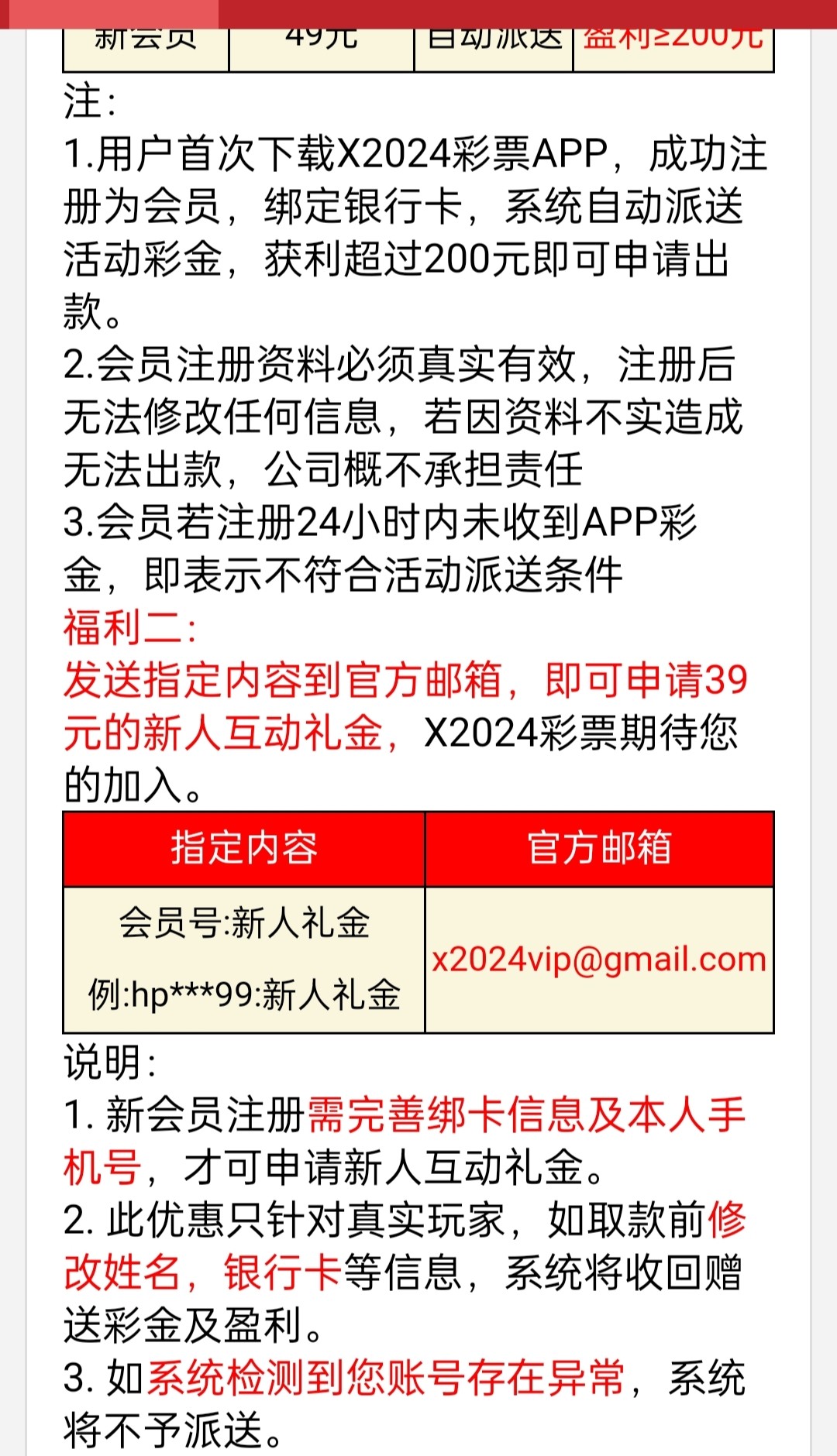 一个下载APP送49,一个发邮箱送39,不限制游戏