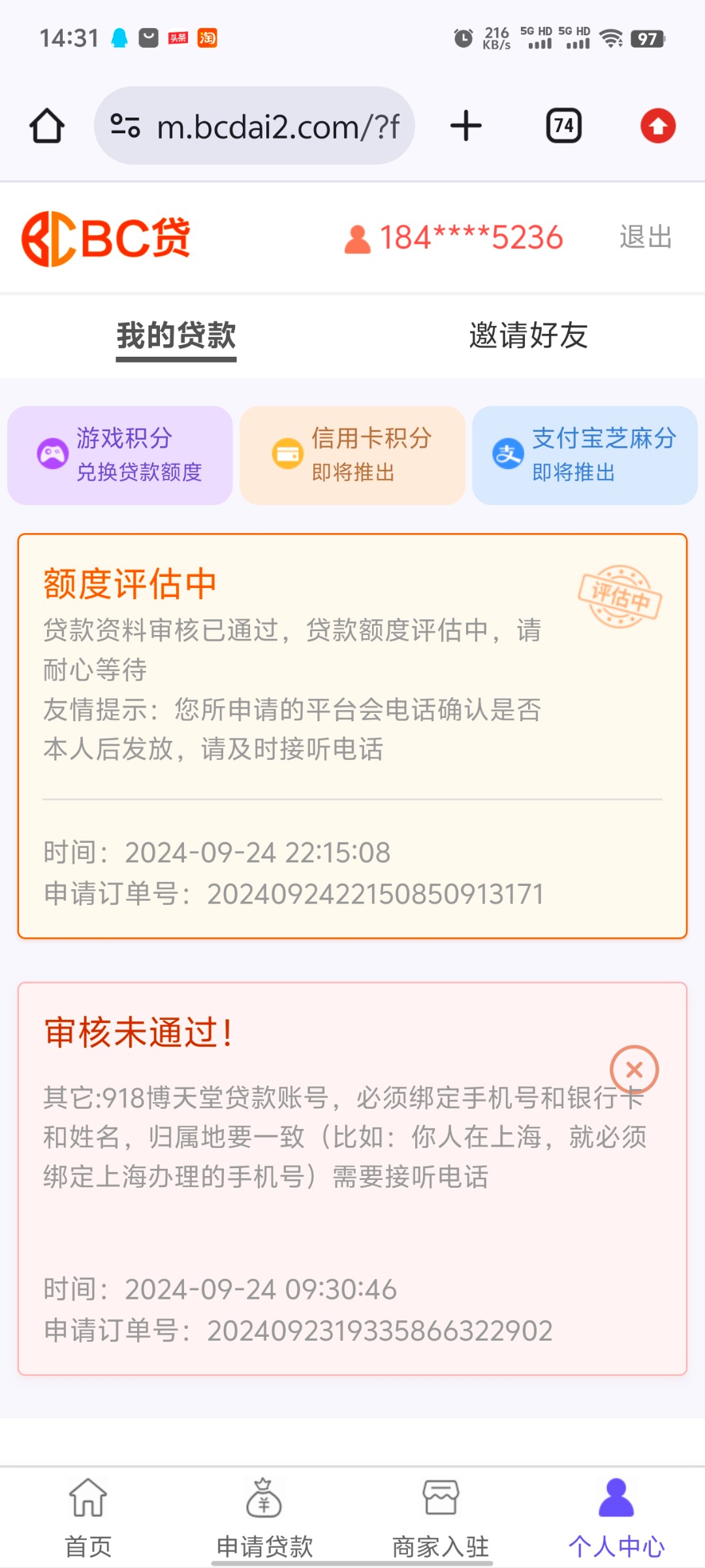 BC贷白嫖了1500