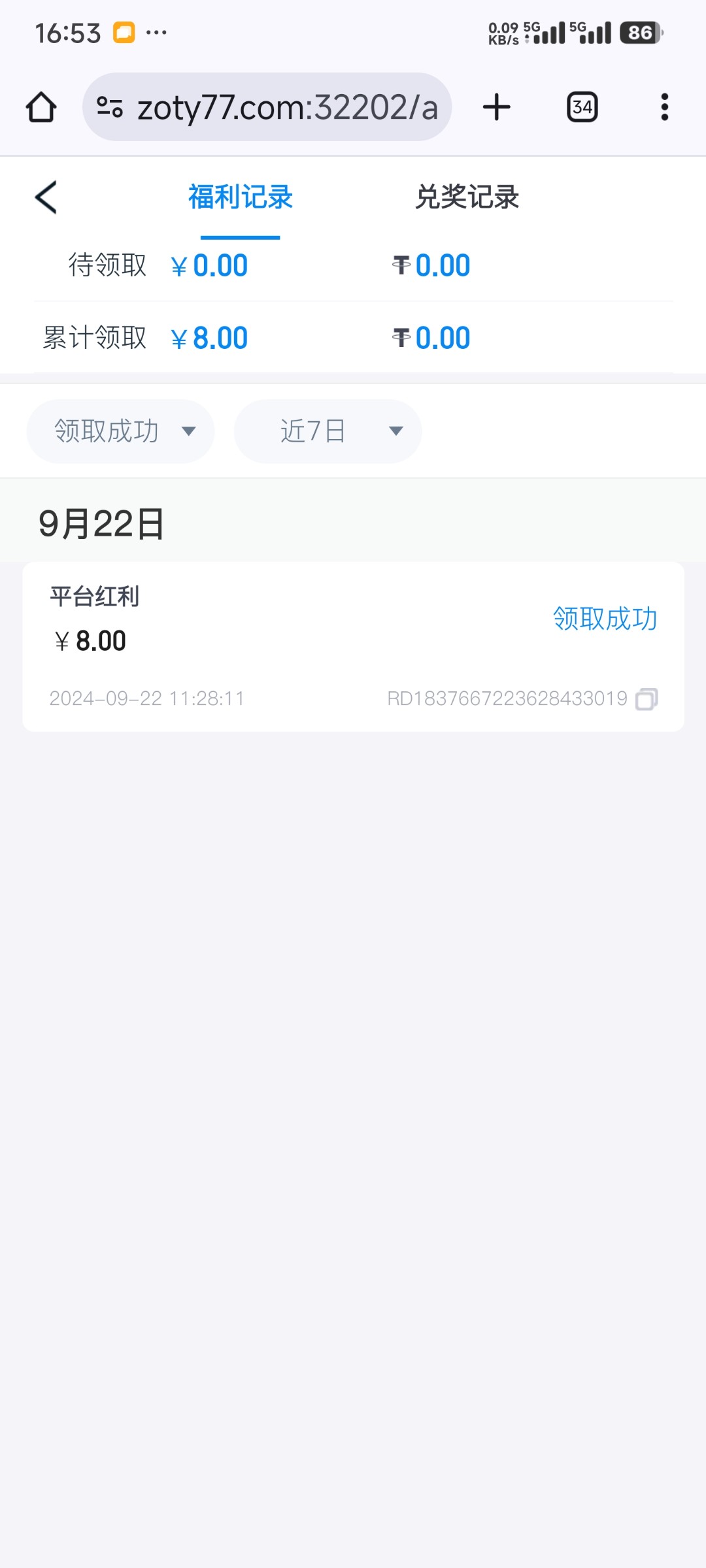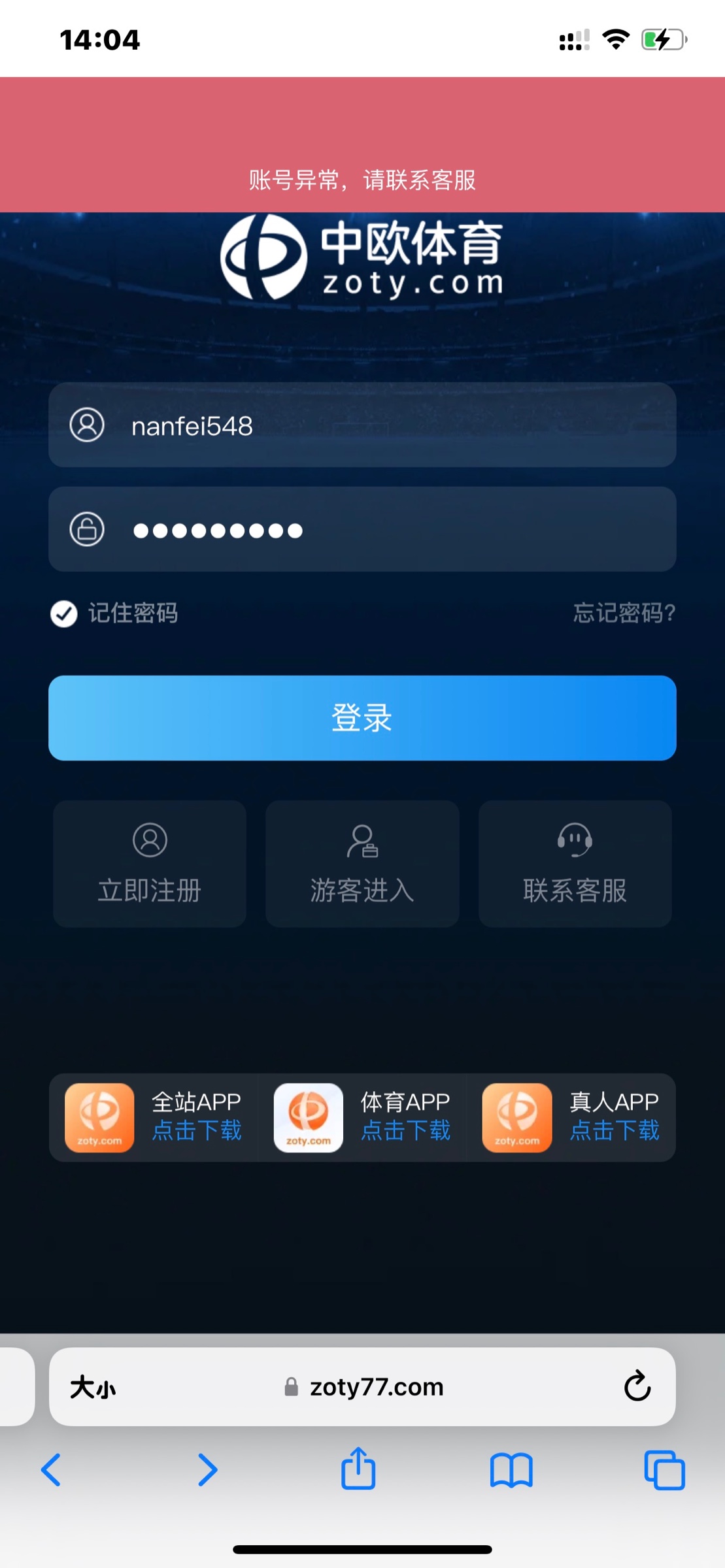 中欧体育前几天注册的号里有8块,有好的可以上去看看 地址 https://www.zoty26.com