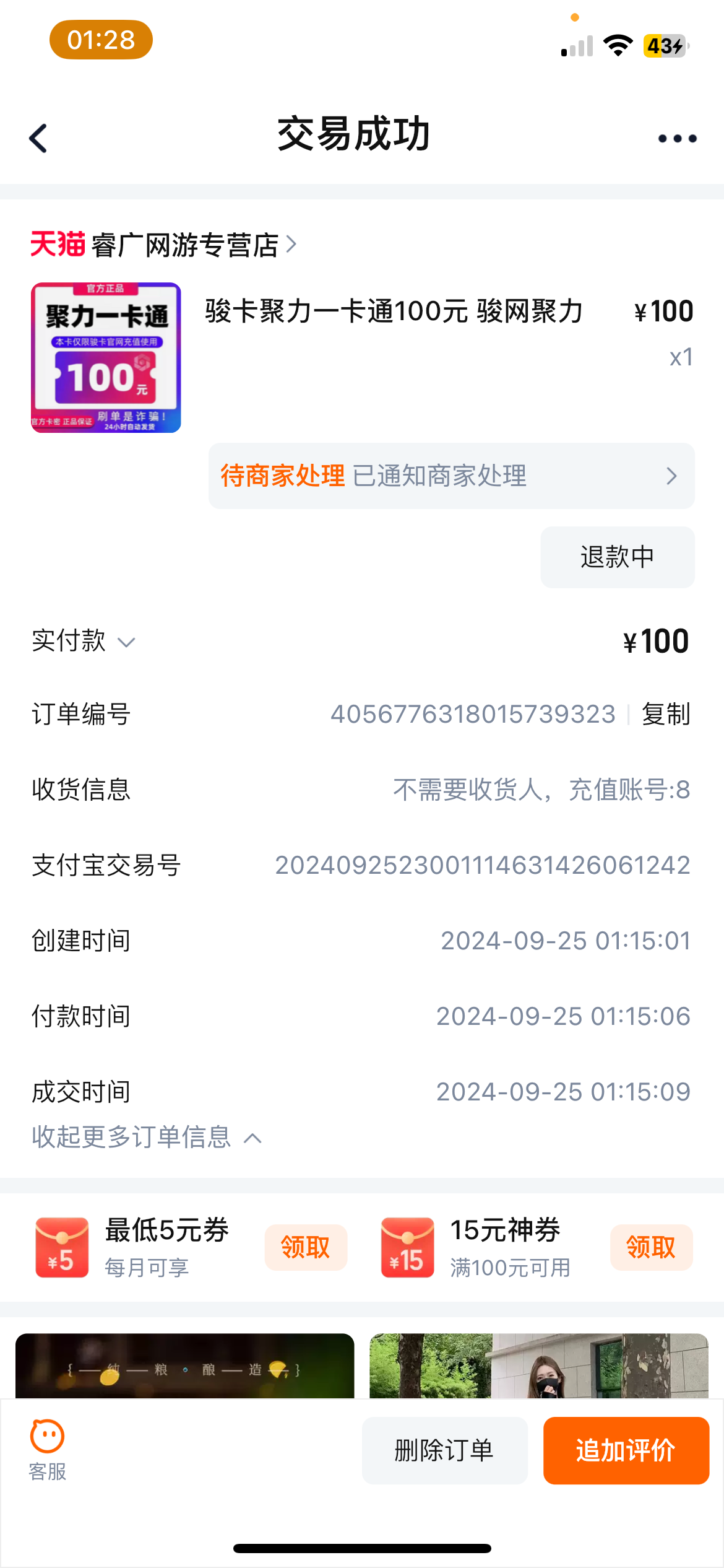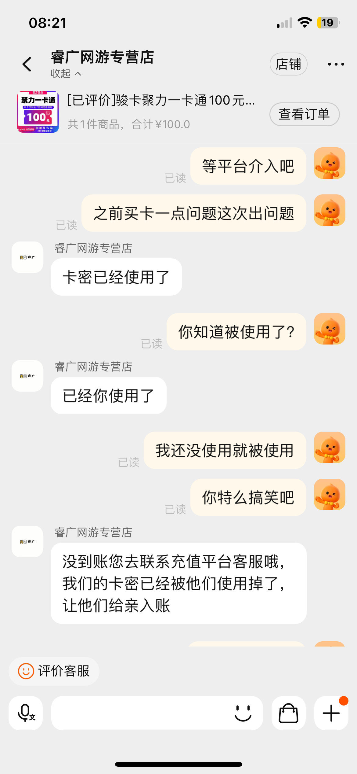 出生淘宝店黑聚力一卡通100已经第二次不行直接发论坛我操他奶奶 淘宝申请售后直接拒绝无视够叼的