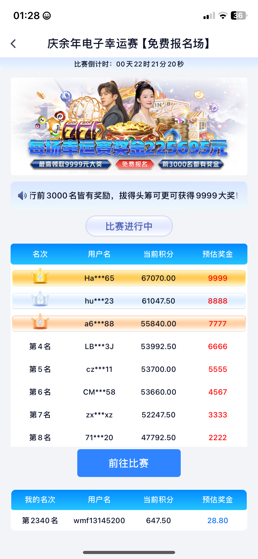 幸运 ▶ 改名中一次吧 他刷的有点慢我23,000才1000多名刷慢 2024-9-27