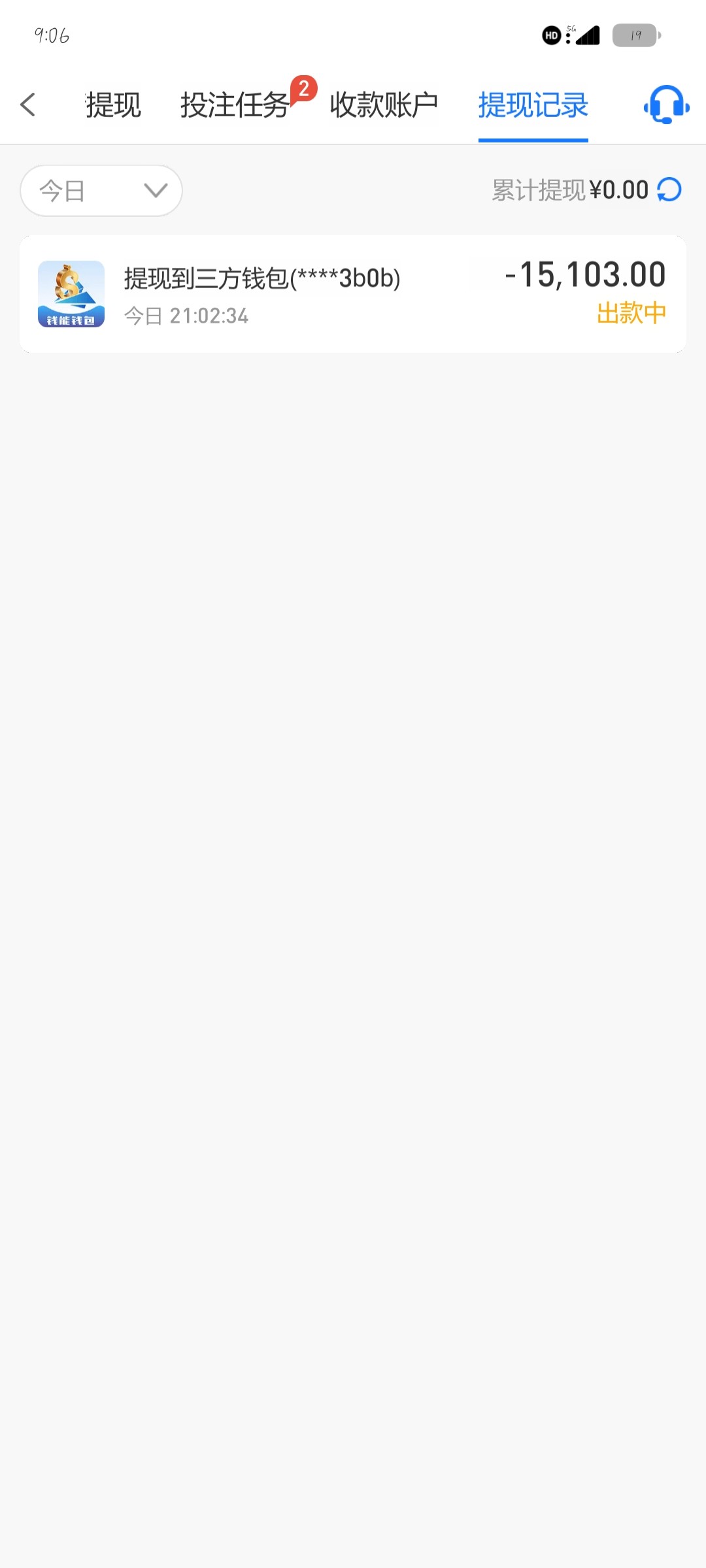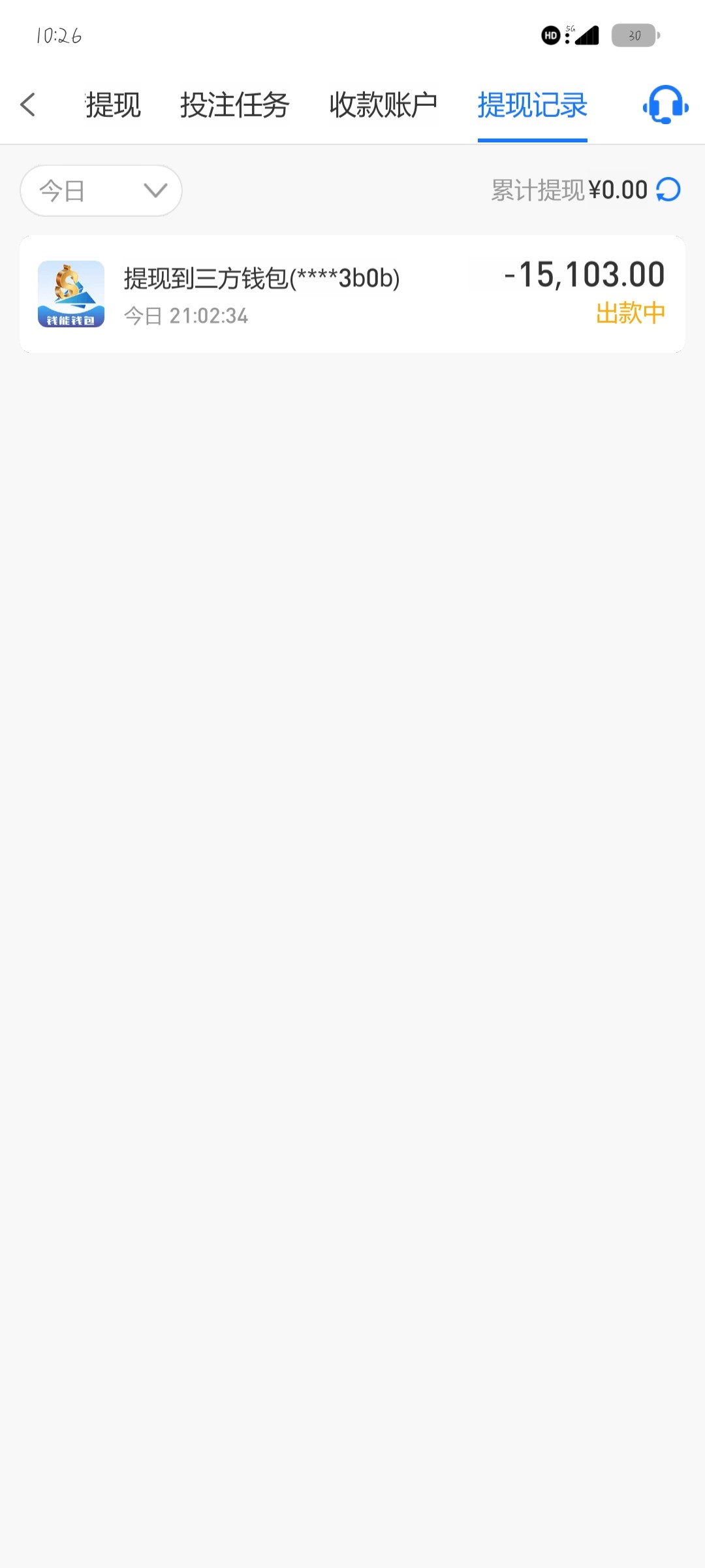 不分批吗  先出一笔小的呀  再复冲回来打流水再提  你这样悬  一个半小时了  还是提钱包的