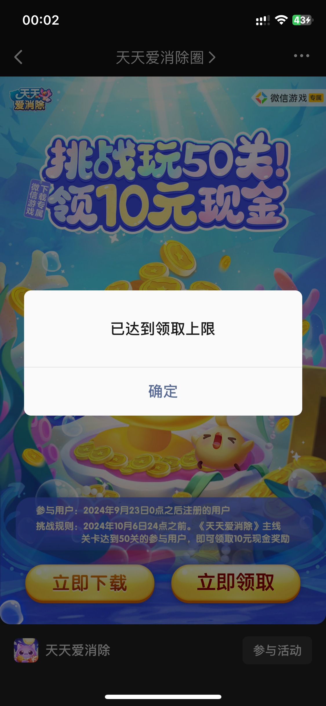 小顺 ▶ 天哥 我也跟你一样差不多玩了半个小时去领取的时候说我不符合范围内,快把我气死了 2024-9-26