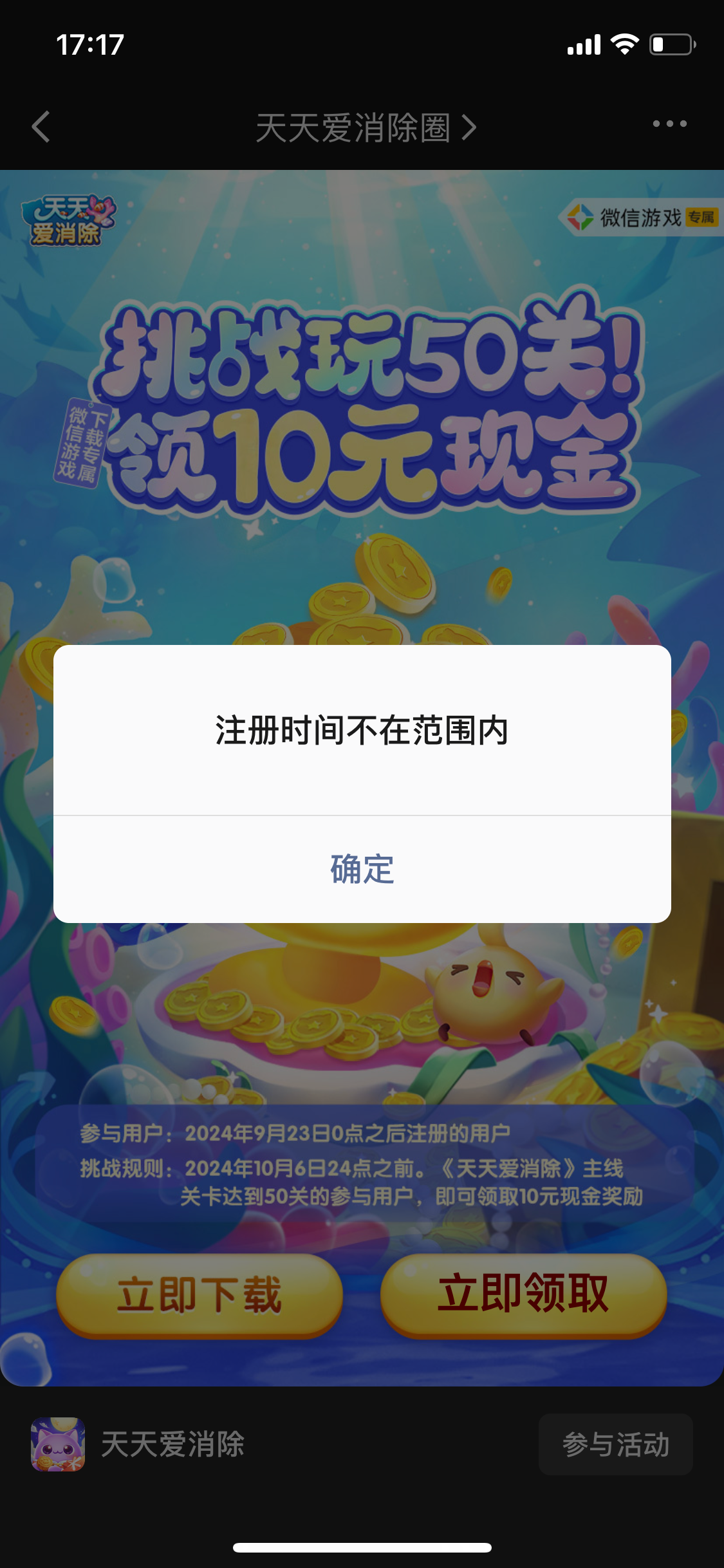 玩完了跟我说不在注册时间内。。。