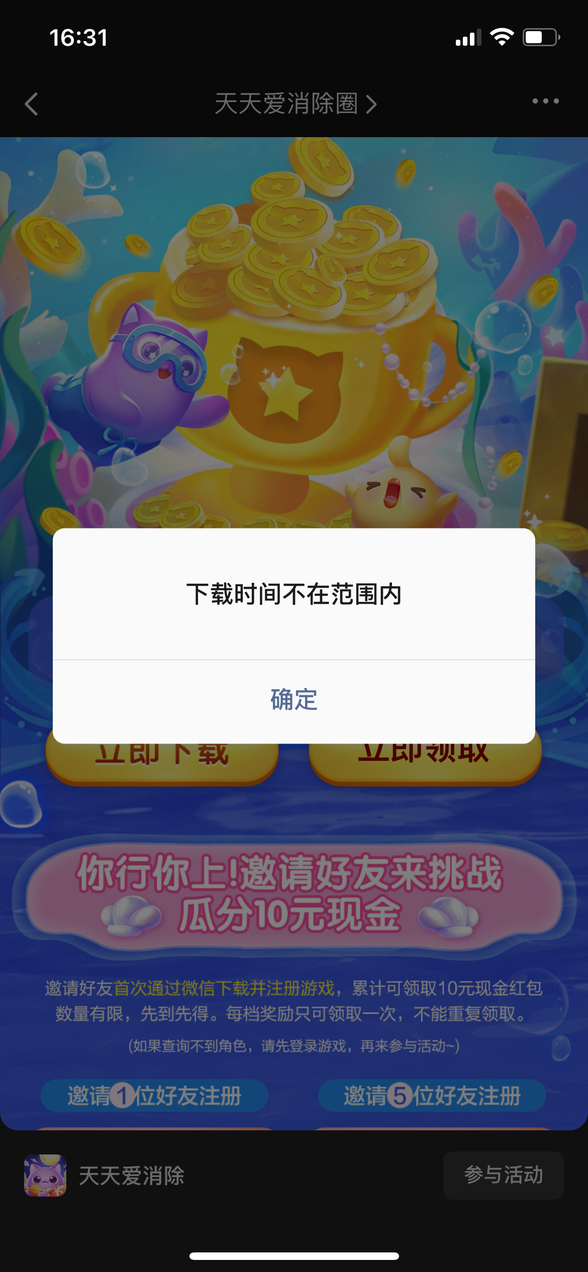 操tmd注册50关打完了,去领取的时候显示时间不符合,无语了。白搞妈的那么久