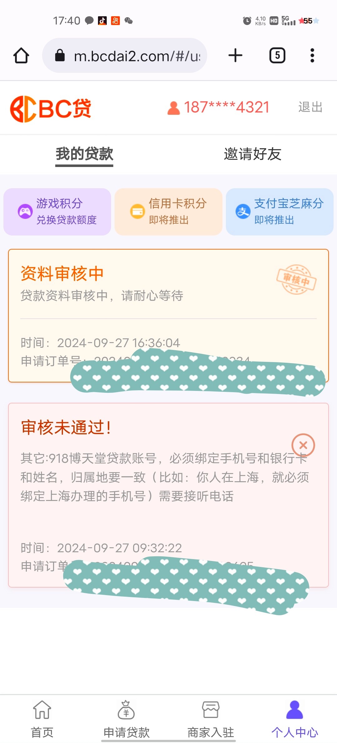 @q610842998 ,一样 我还接了一个电话跟我说送48u 六点前到账 4点多我去bc贷 就是审核不通过了