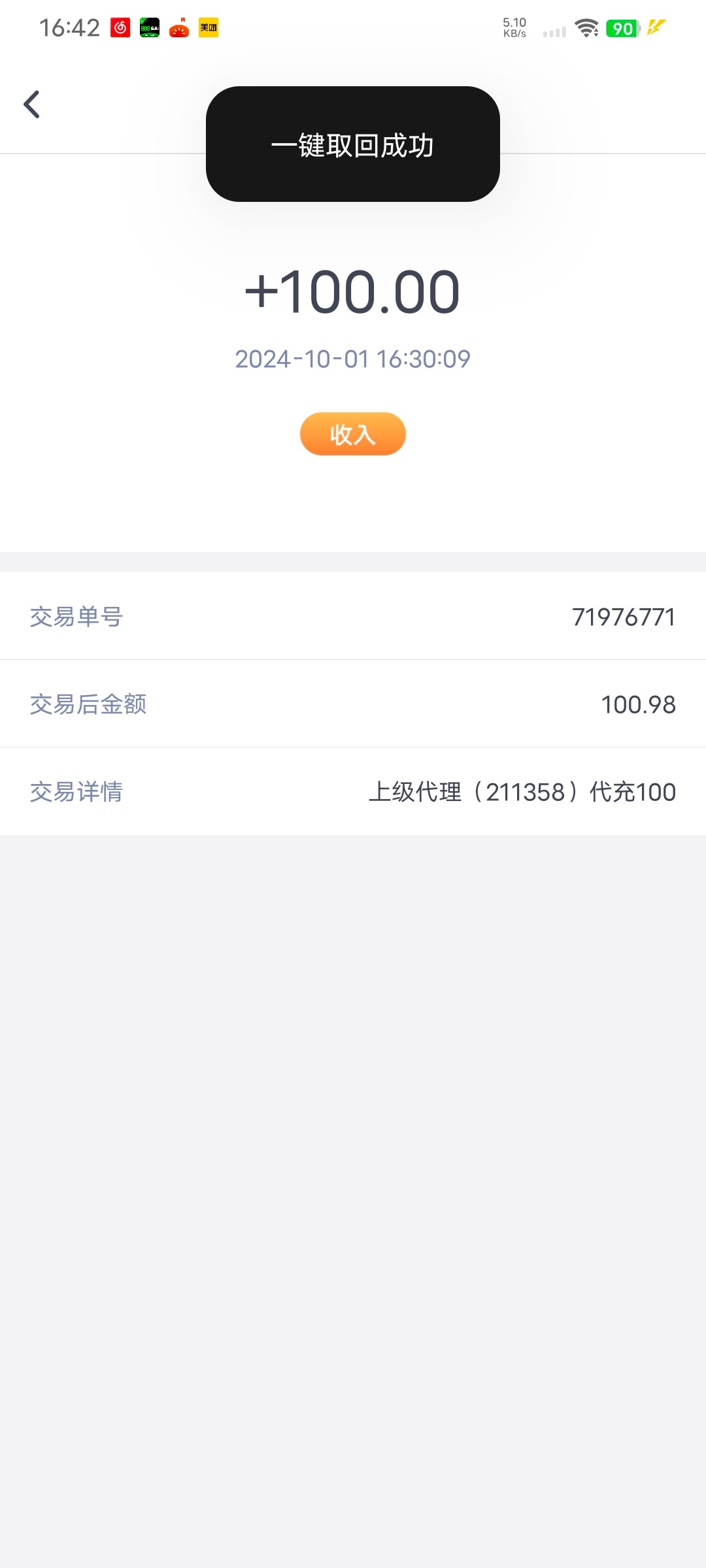 收到了