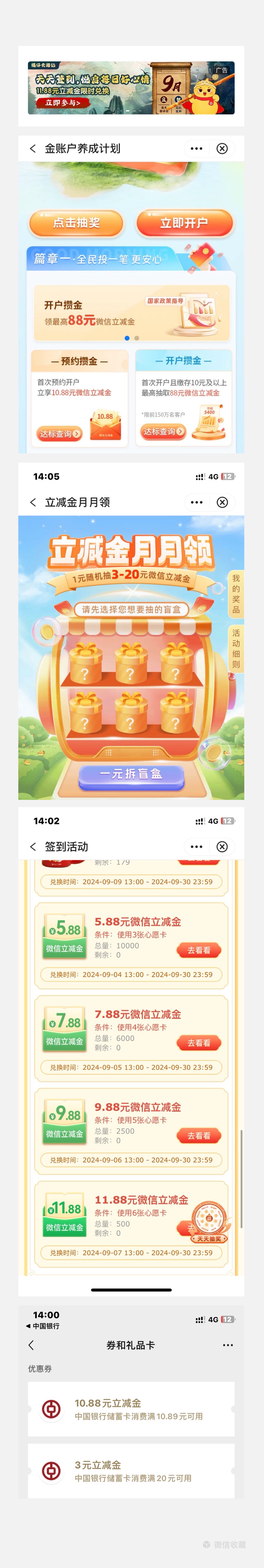 搜索金账户养成计划,预约开户成功送10.88立减金(领取之后联系网点取消就行)
