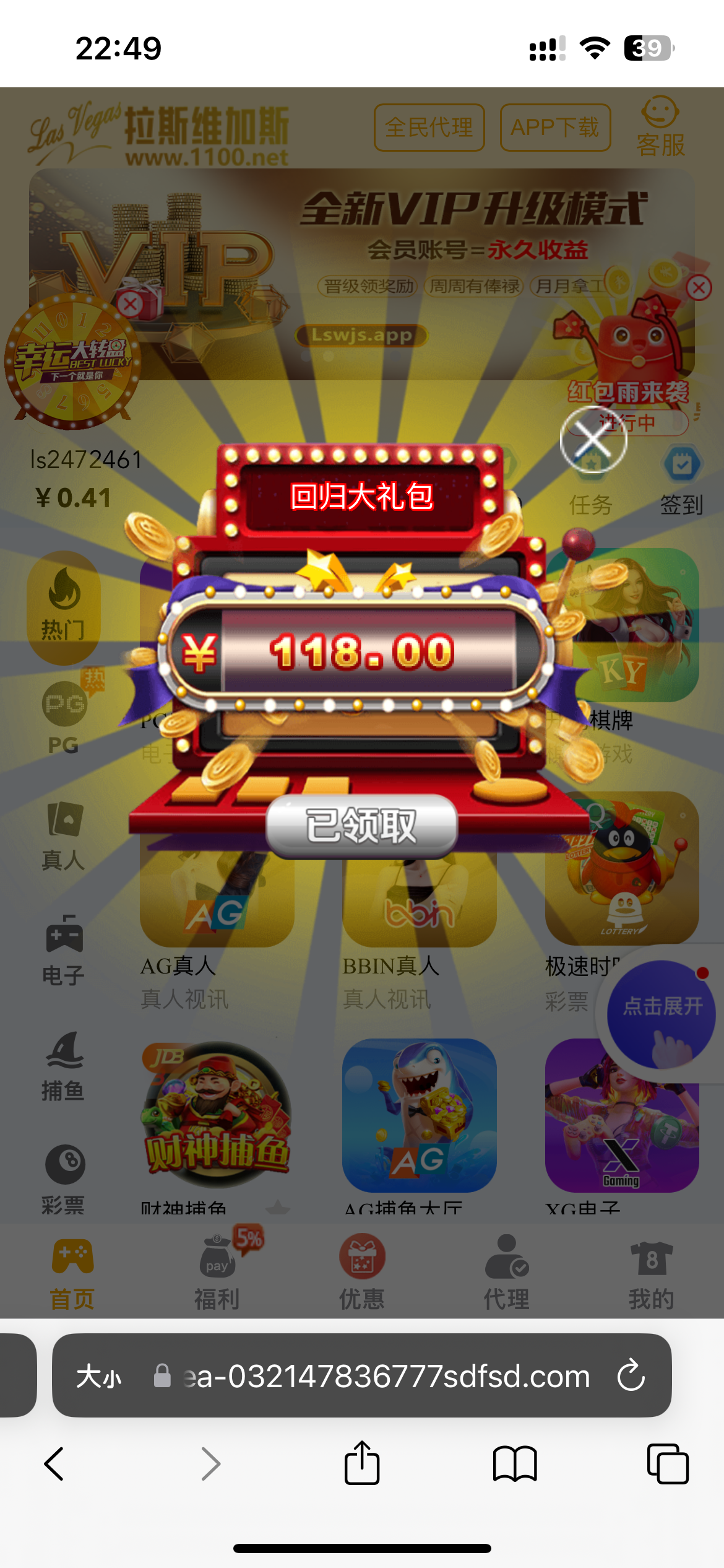 有账号的老哥可以上去看看 我去年充值了一百 今天登上去给了118回归彩金 1100.net