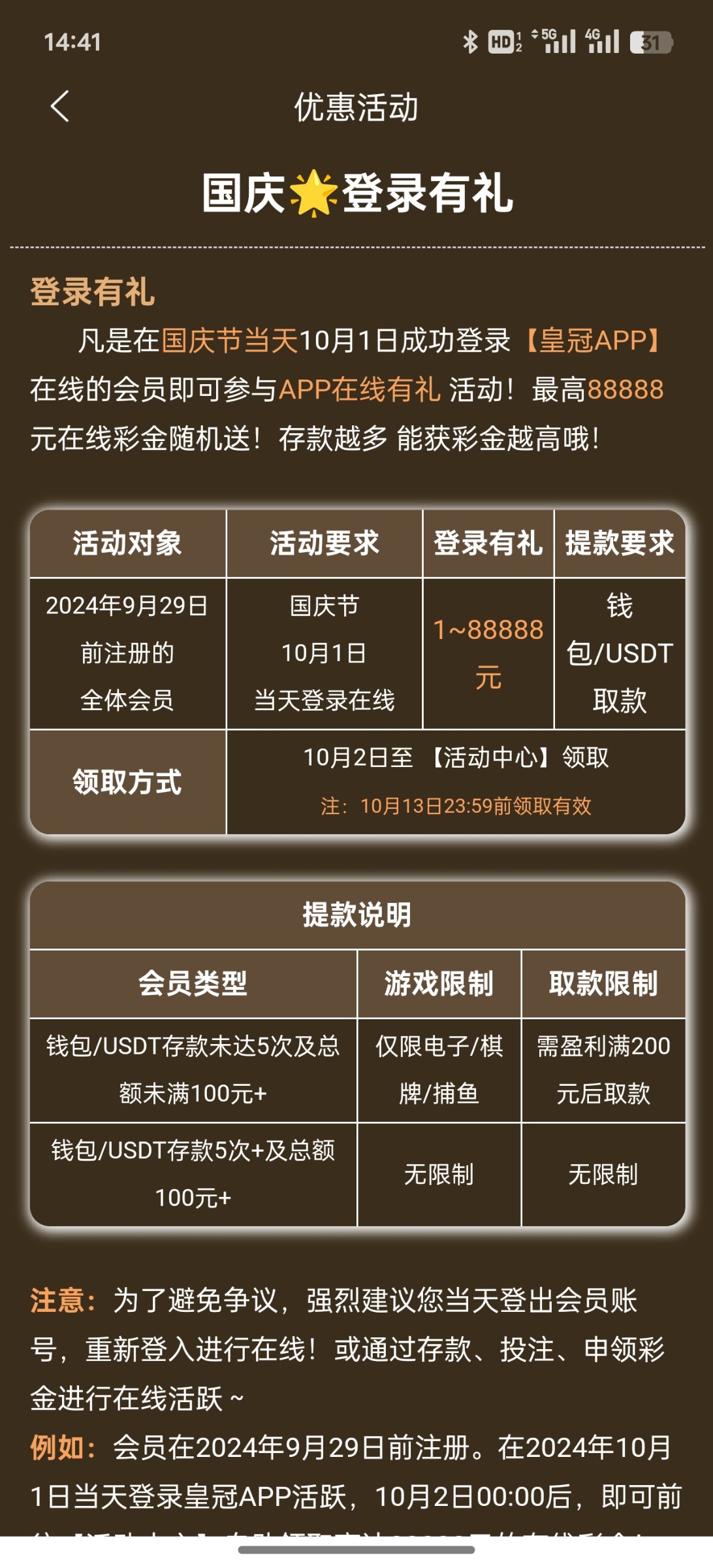 老哥们皇冠227国庆10.1号登录有彩金