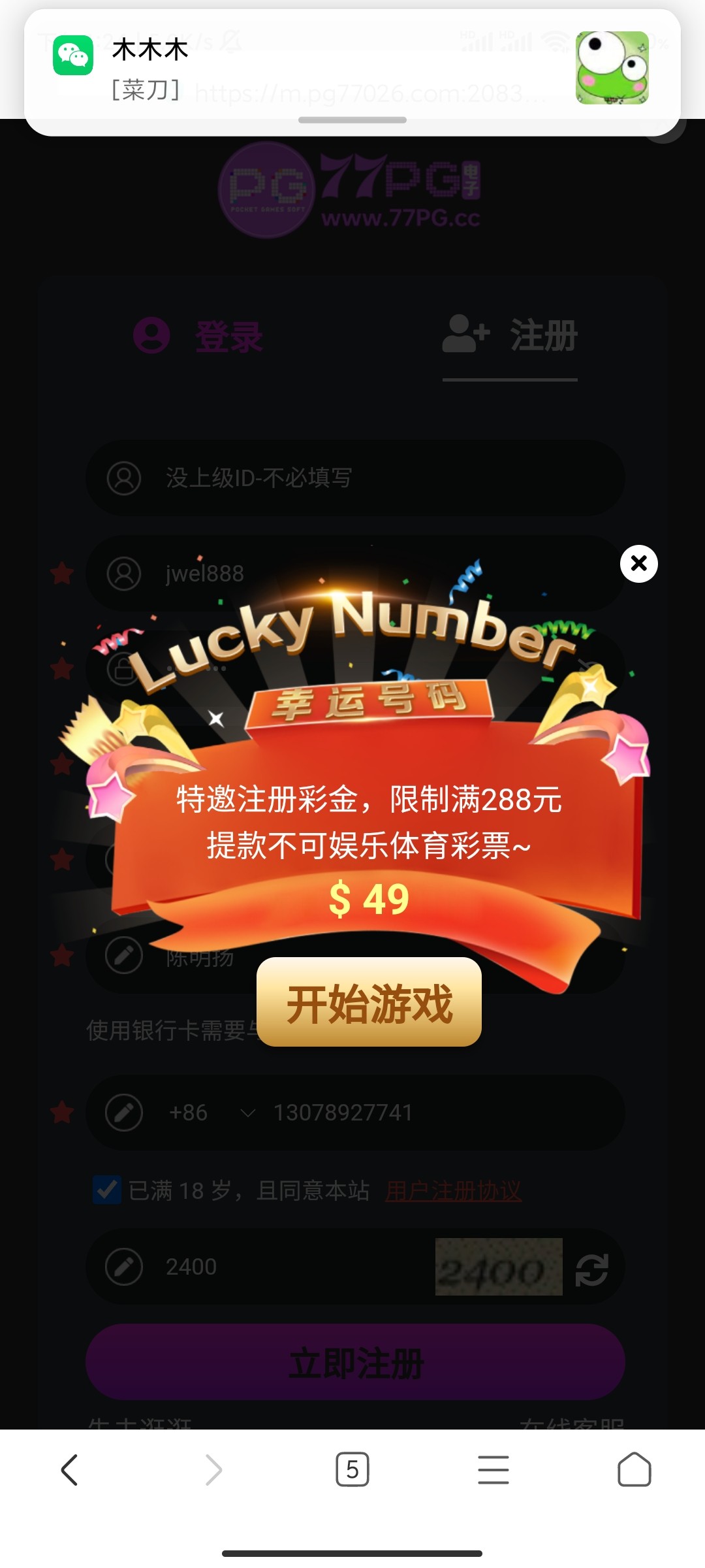 注册彩金17.77已经送了