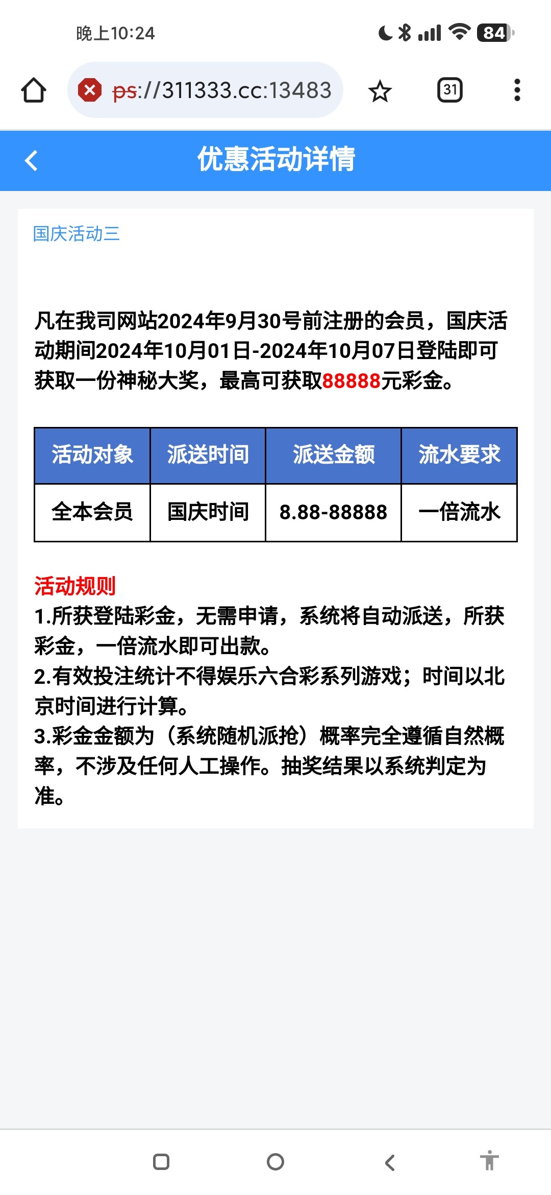 国庆有彩金,有号的记得上去领取,www.311.cc