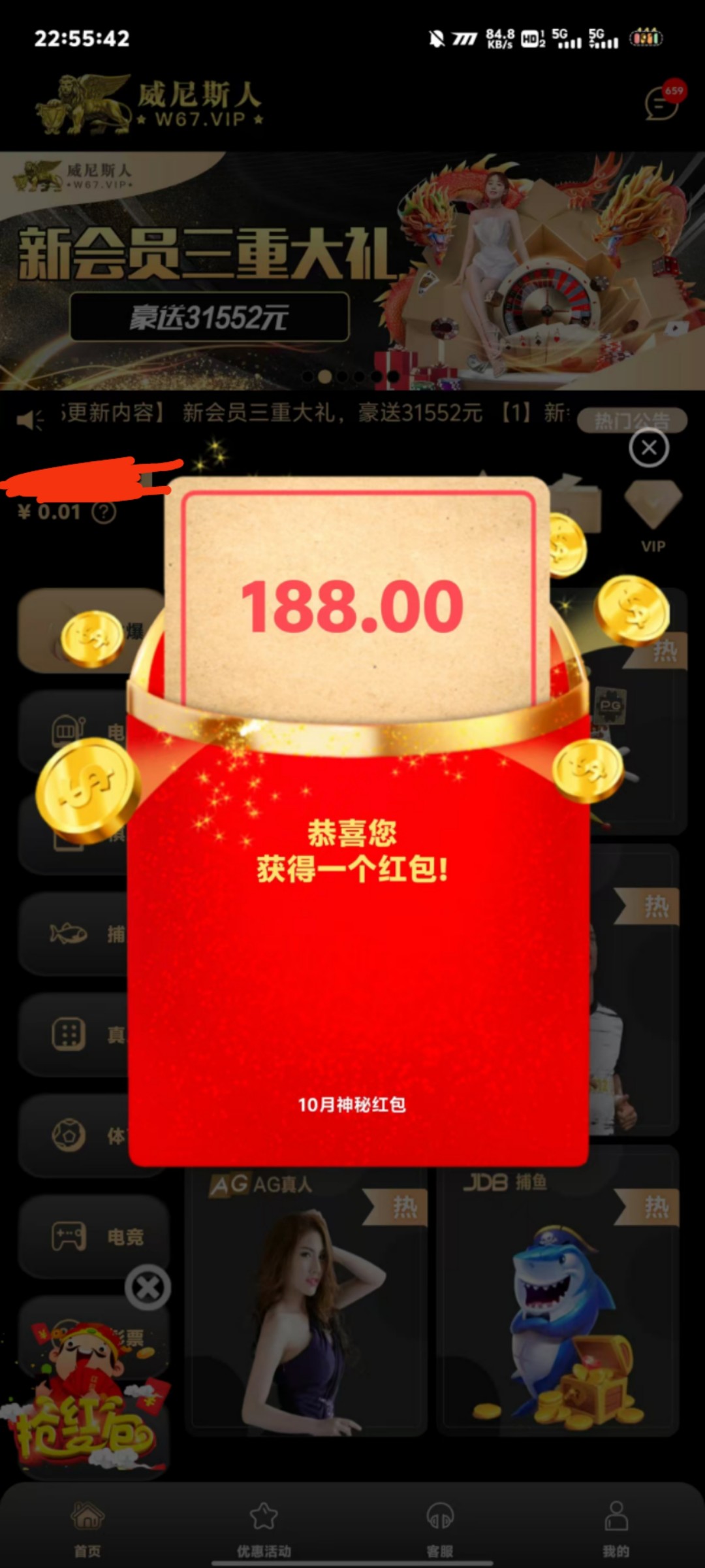 之前玩过的可以登录一下看看有没有红包。我每个月都能领一个,今年累计存款2024,明天可以领个88元的红包 地址 w67.vip