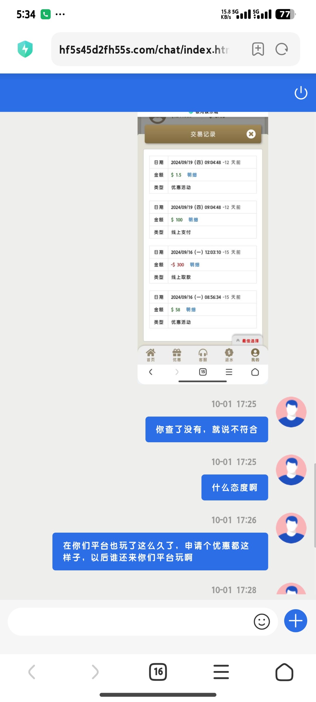 挂壁台客服半个小时都不回 老子充了7w多这个挂壁台