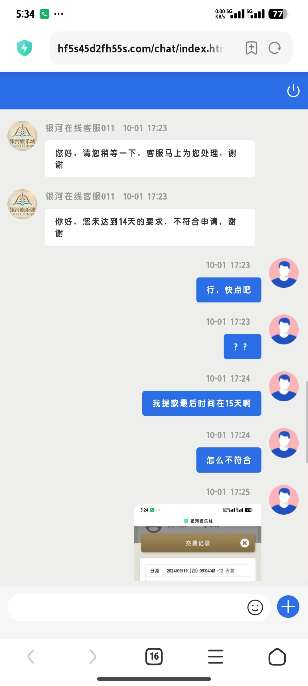 老哥选我啊啊 ▶ 风吹PP凉 你也是16号取款的?客服也说我不符合 别人17号取款反而给了 2024-10-1