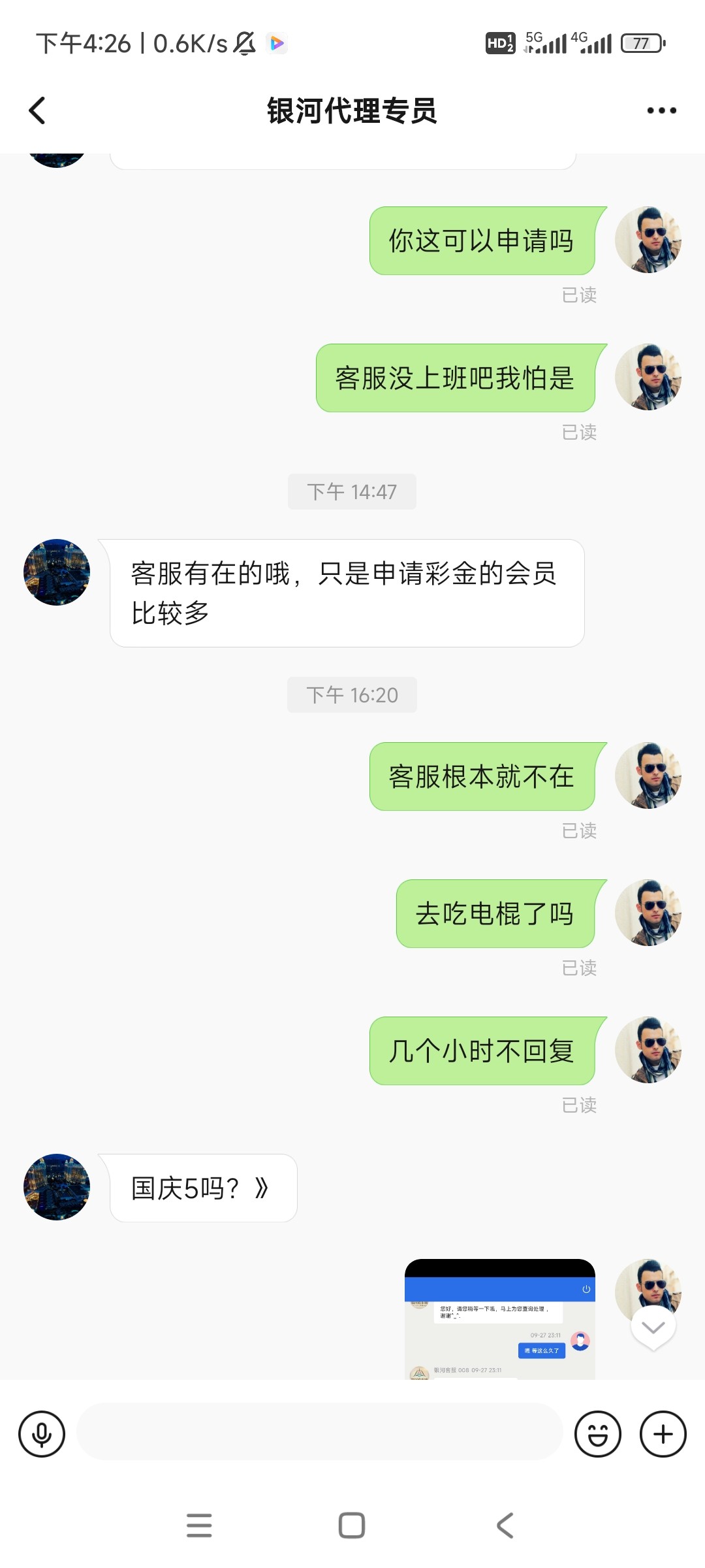 @q5461221 我15号提款的,日了狗。肯定是客服问题,态度不行。今天这么多人申请,还懒得理你。