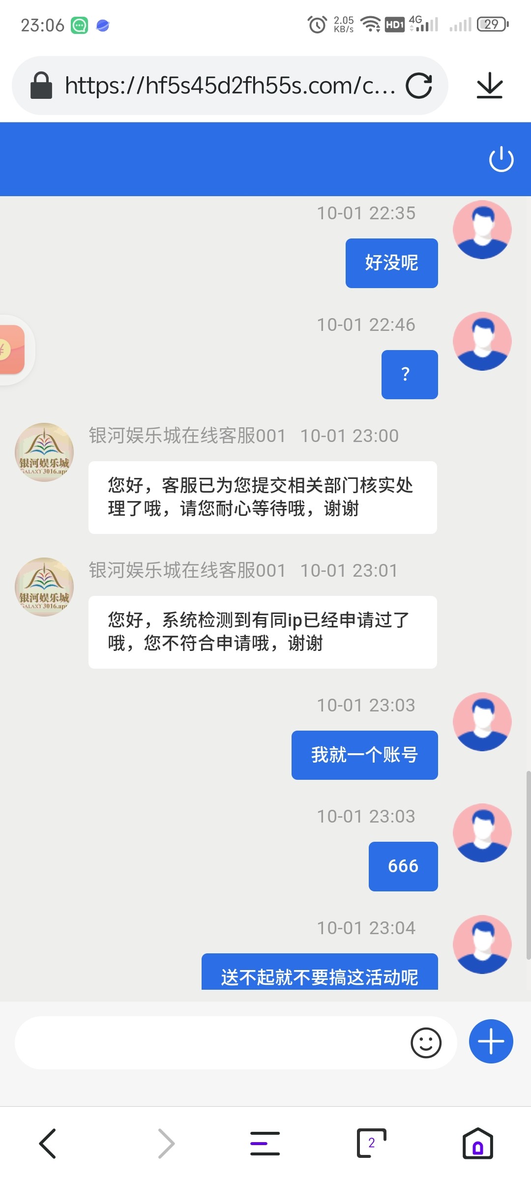 发了两个小时信息给客服都没回