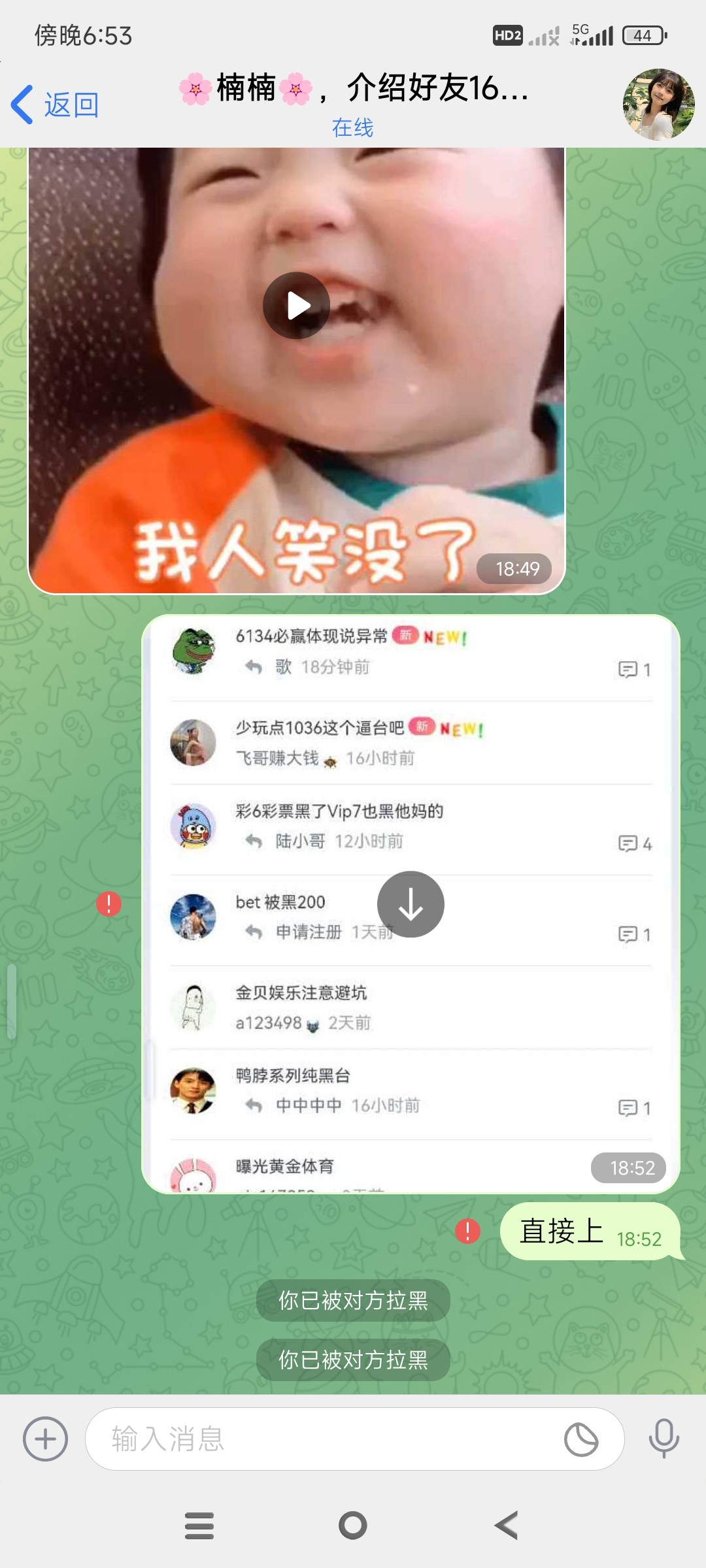 直接把我拉黑了,黑了五千