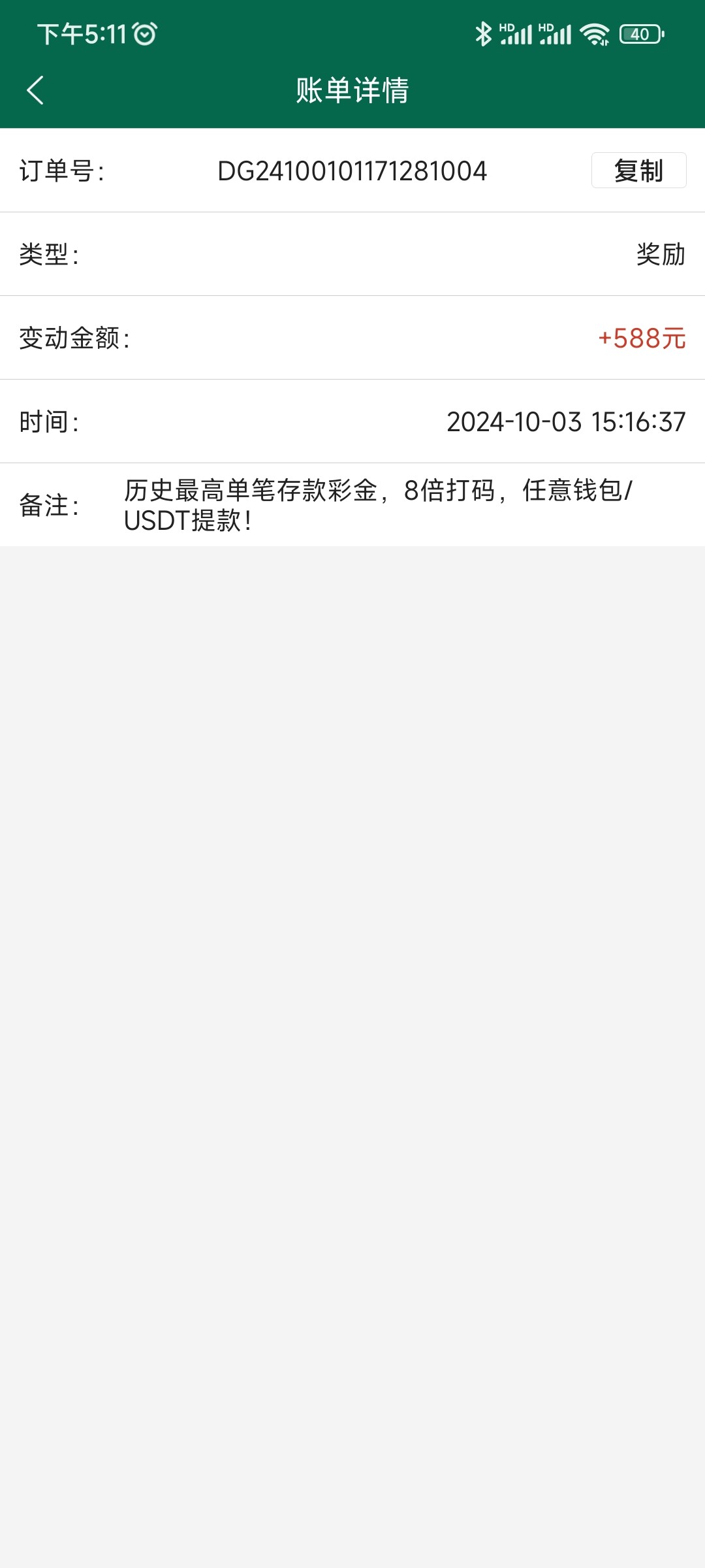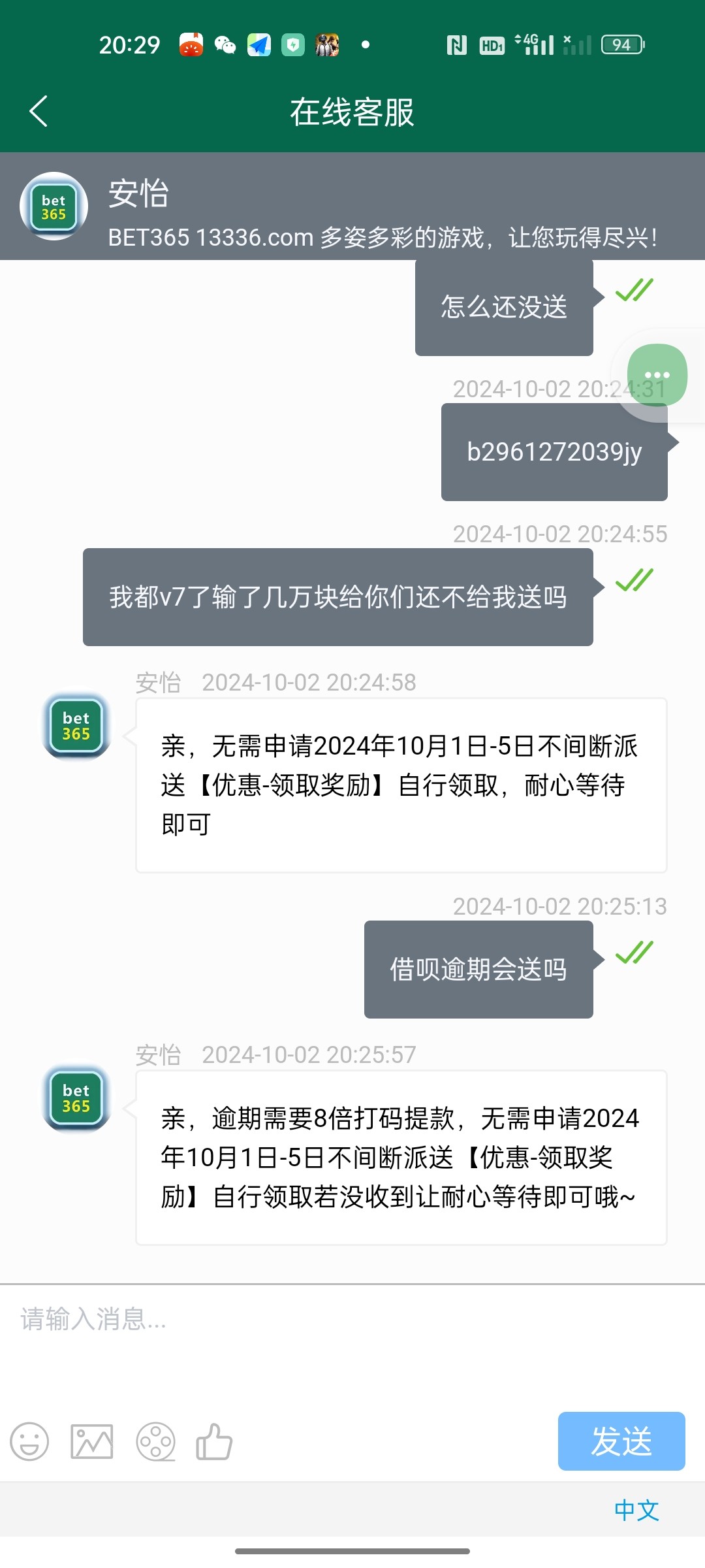 逾期5个月也没充值的给我送了,但是8倍打码