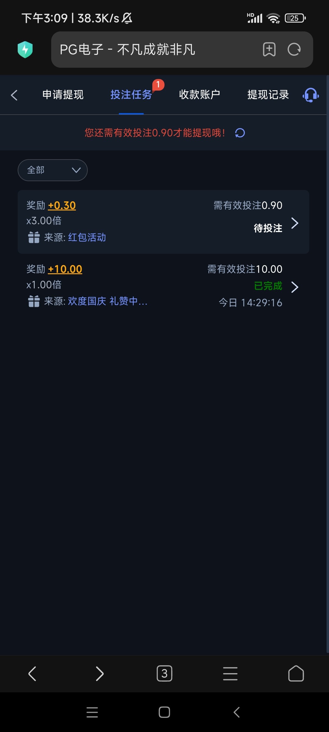 牛逼台,莫名其妙的给个3毛红包,0.9流水打了几百都不刷新。硬卡着提现。牛逼台