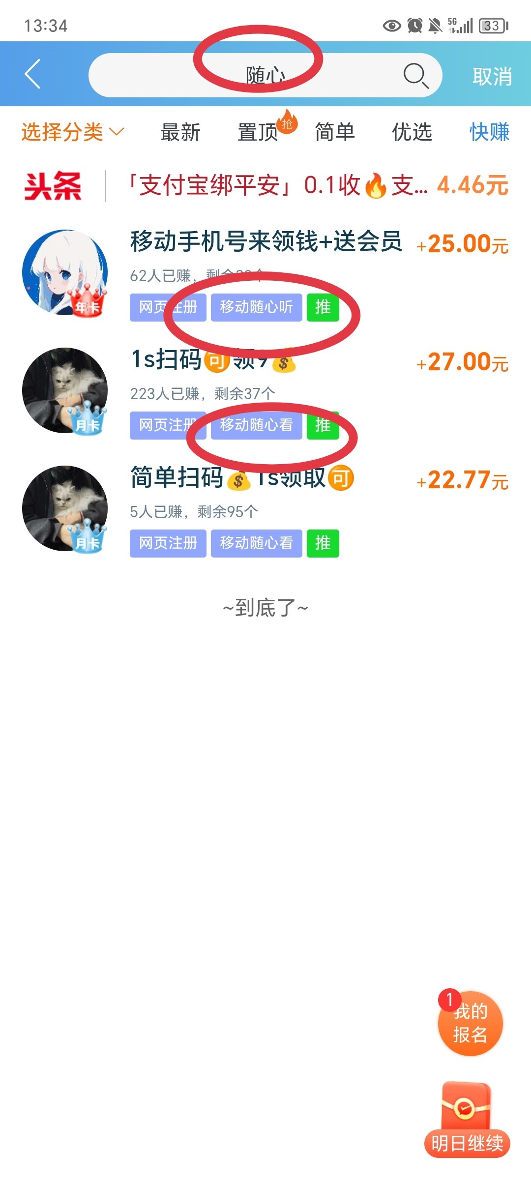 两个任务扣40块钱话费可以到手52块钱,注意看一个随心听一个随心看,广东,云南,黑龙江,山东的手机号,不要做!有趣闲赚的可以直接去搜(随心)两个字去做。没有的可以去下载 quxianzhuan.com 这是官方链接我不存在拉人头。自己主要看要求截好图就可以